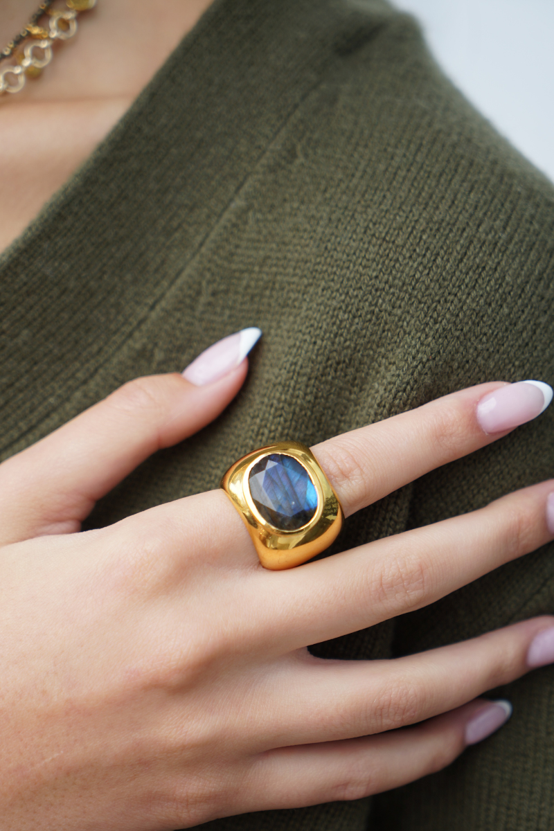 RECTANGULAR RING WITH SMOKY TOPAZ