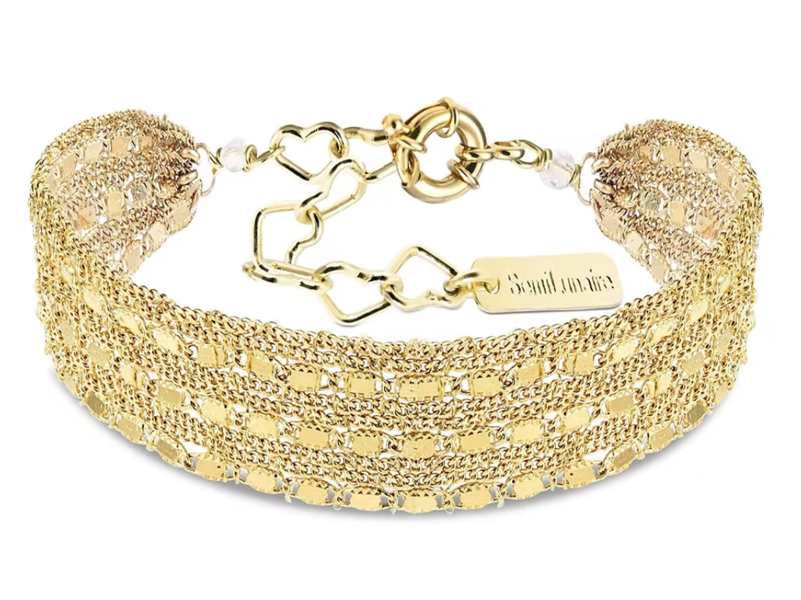 Wide Gold Woven Chain Bracelet with Lighter Stripe