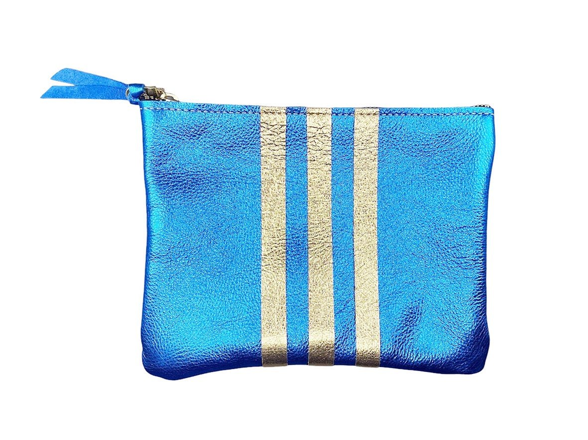 Royal Blue Metallic Leather Pouch with Gold Stripes