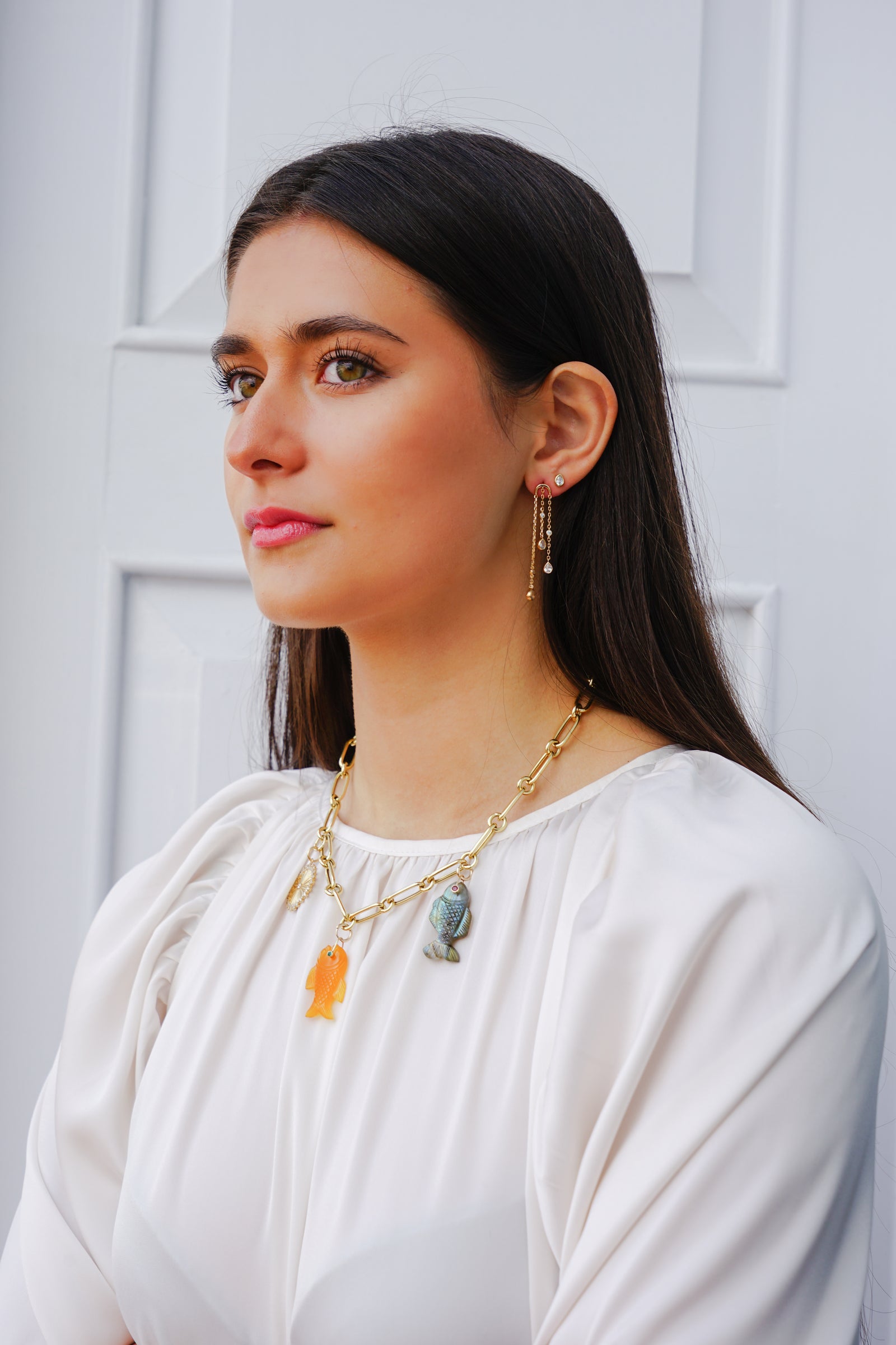 14k Handcrafted Labradorite Fish Charm with Tourmaline Eye