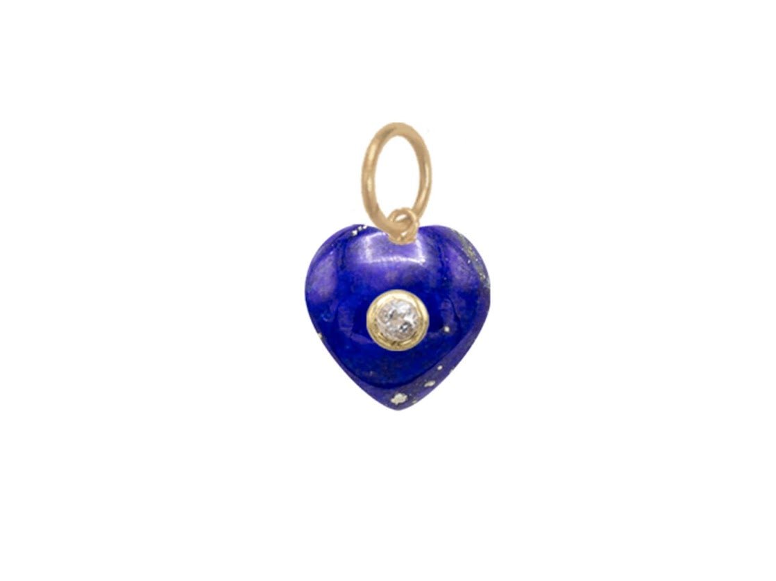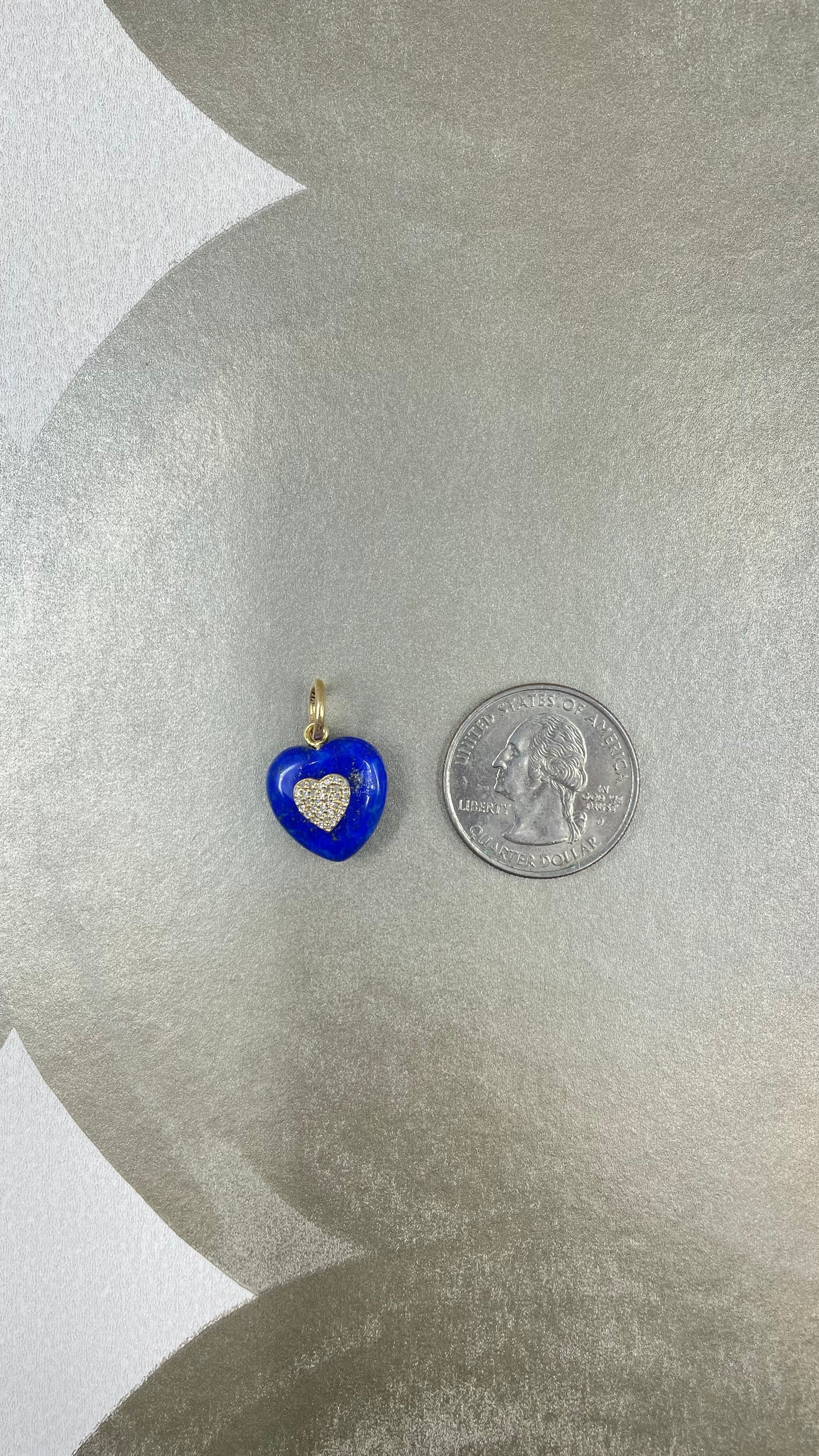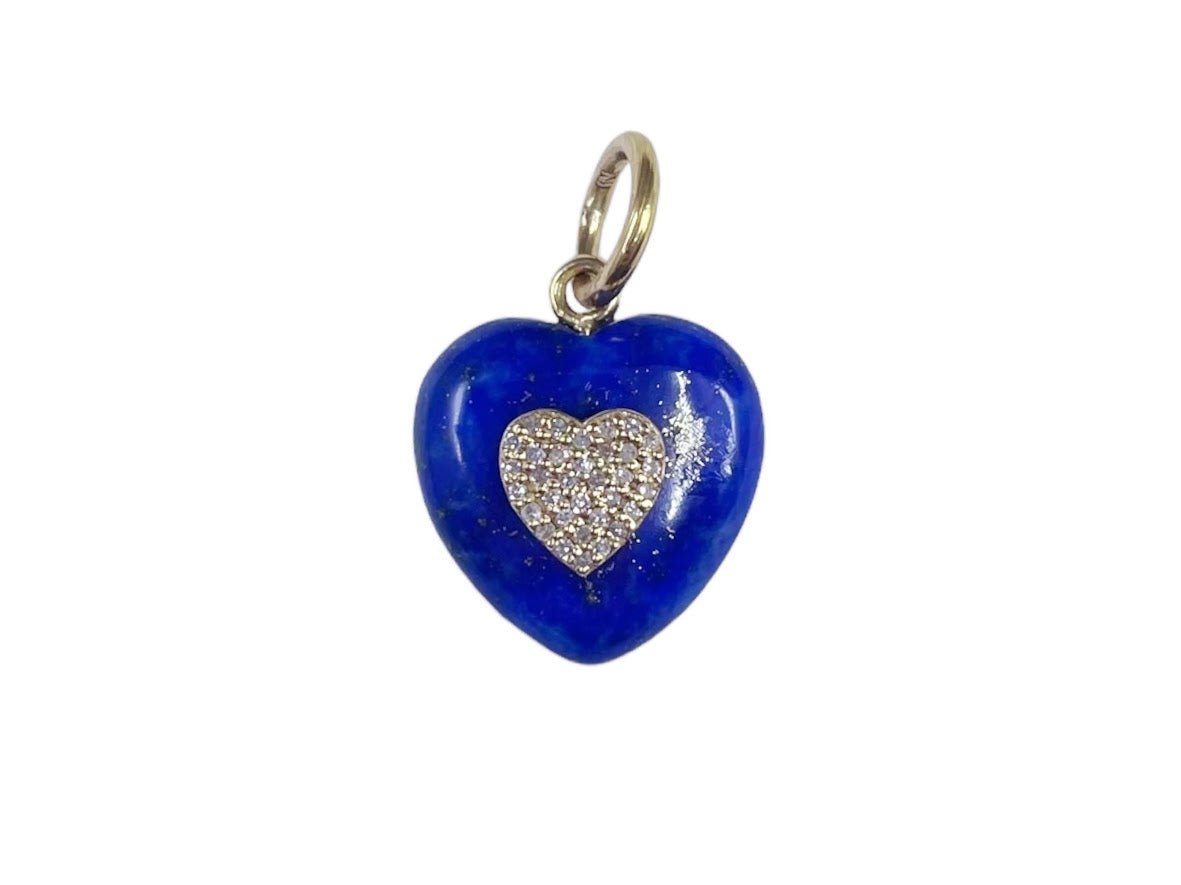 14k Lapis Heart Charm with Bezel Set White Topaz