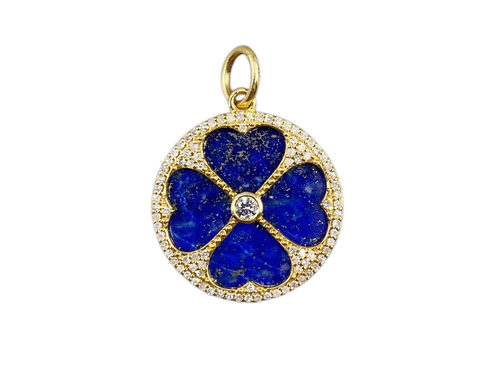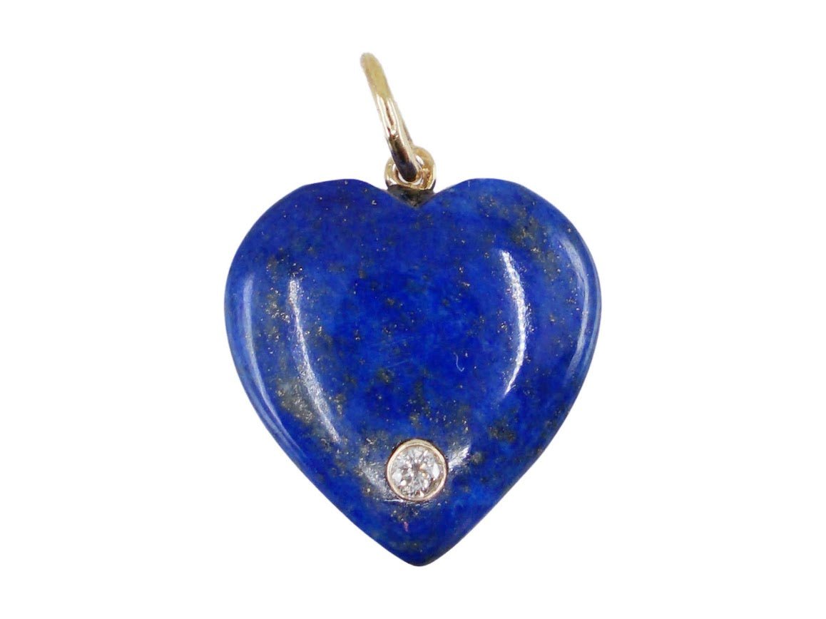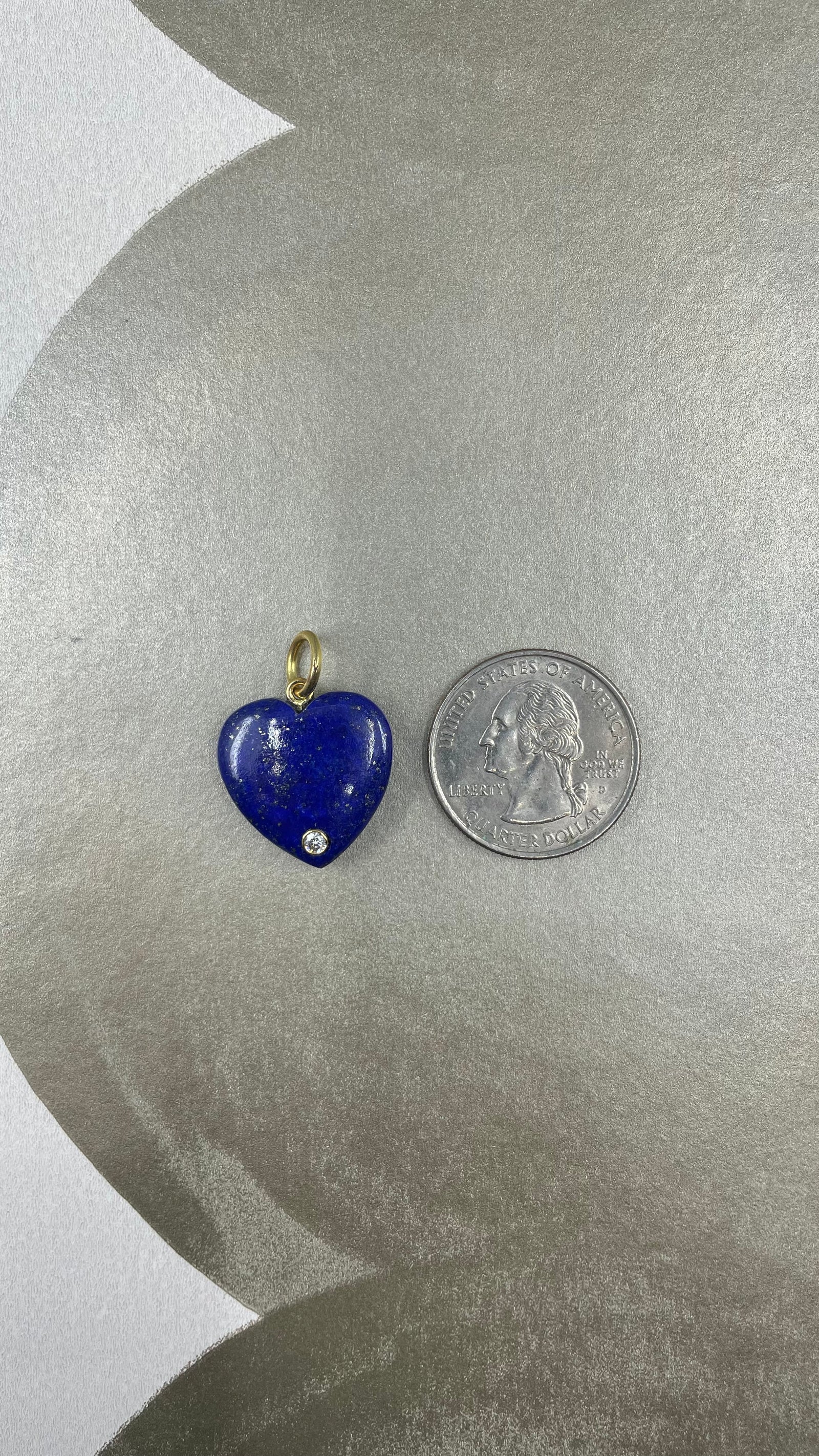 14k Lapis Heart Charm with Bezel Set White Topaz
