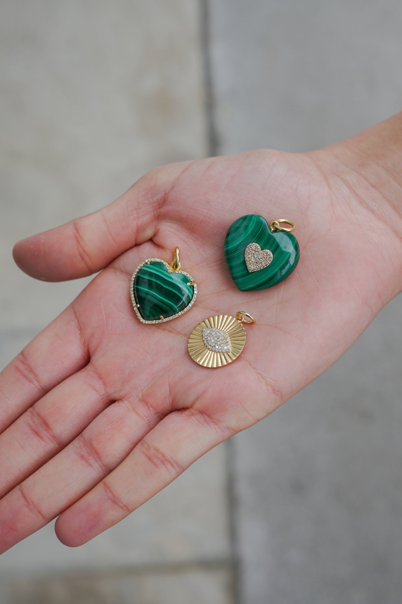 14k Orange Onyx Heart Charm with Bezel Set Turquoise