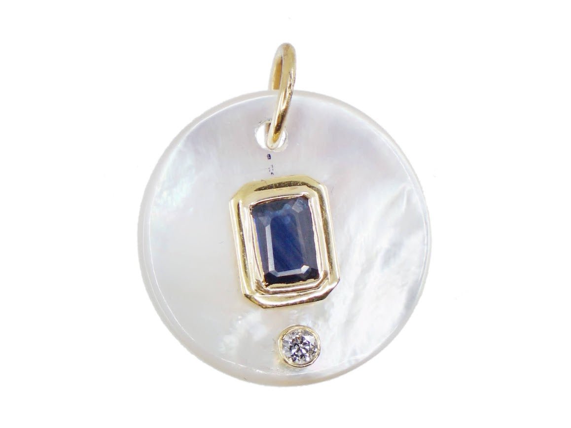 14k MOP and Star Sapphire Charm with Diamond Clasp