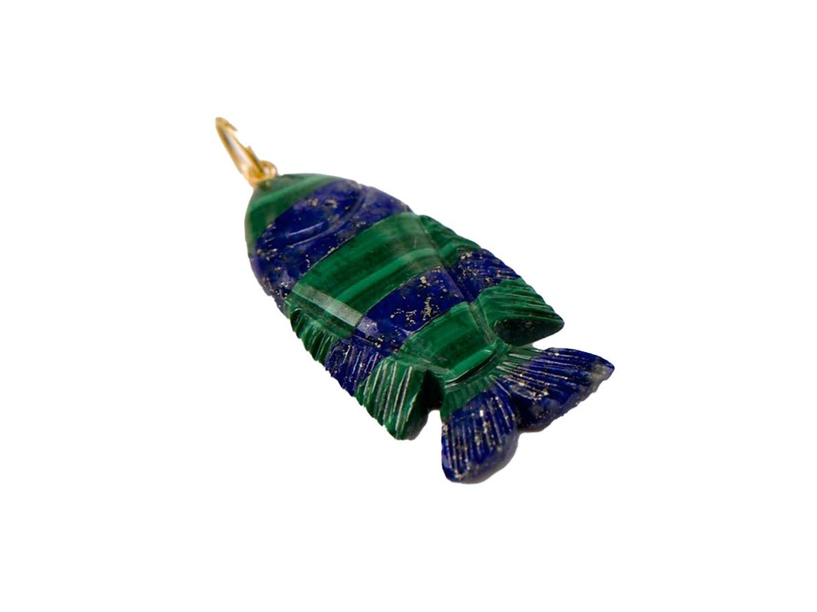 14k Handcrafted Turquoise Fish Charm with Carnelian Eye and Fins