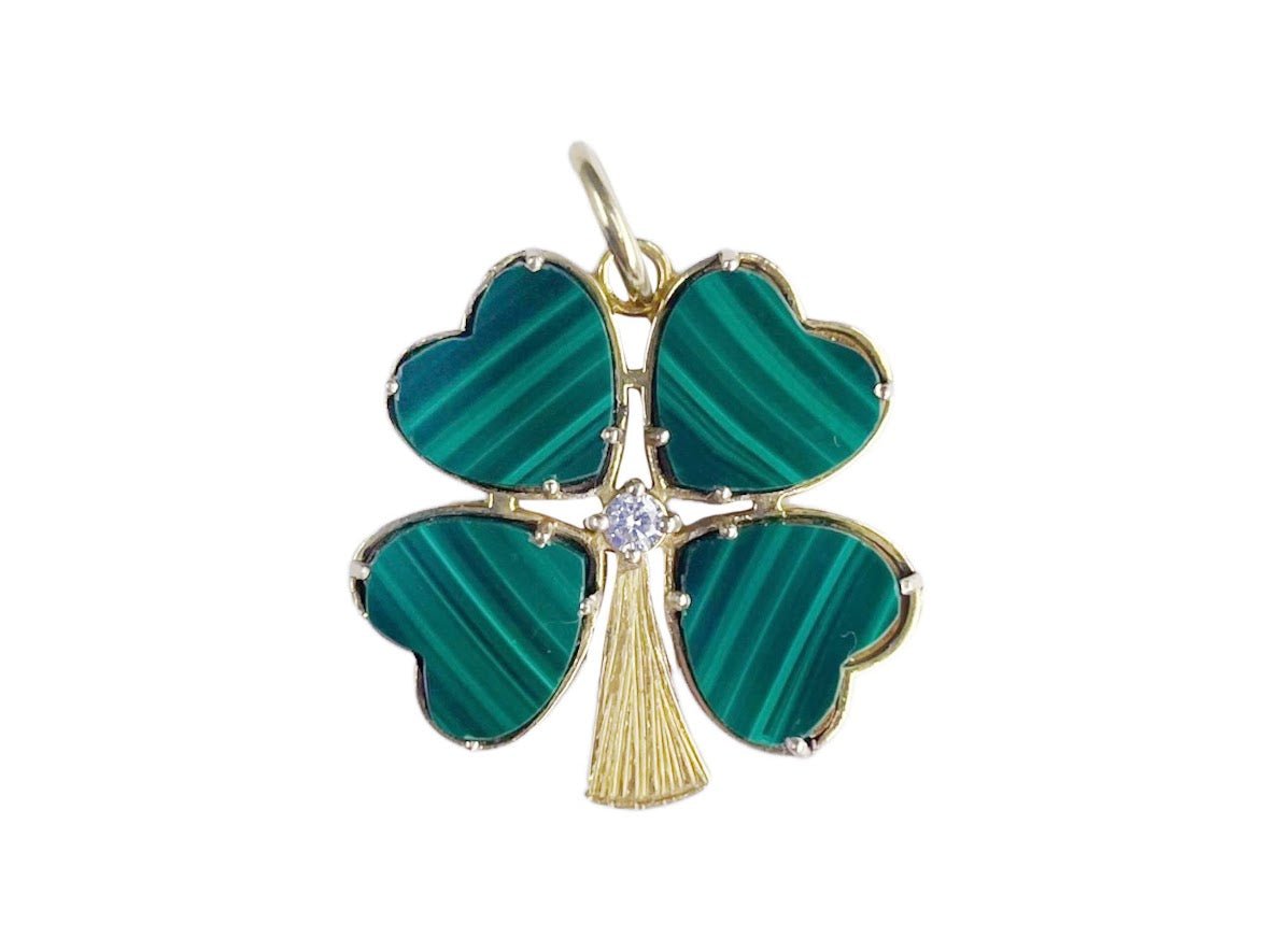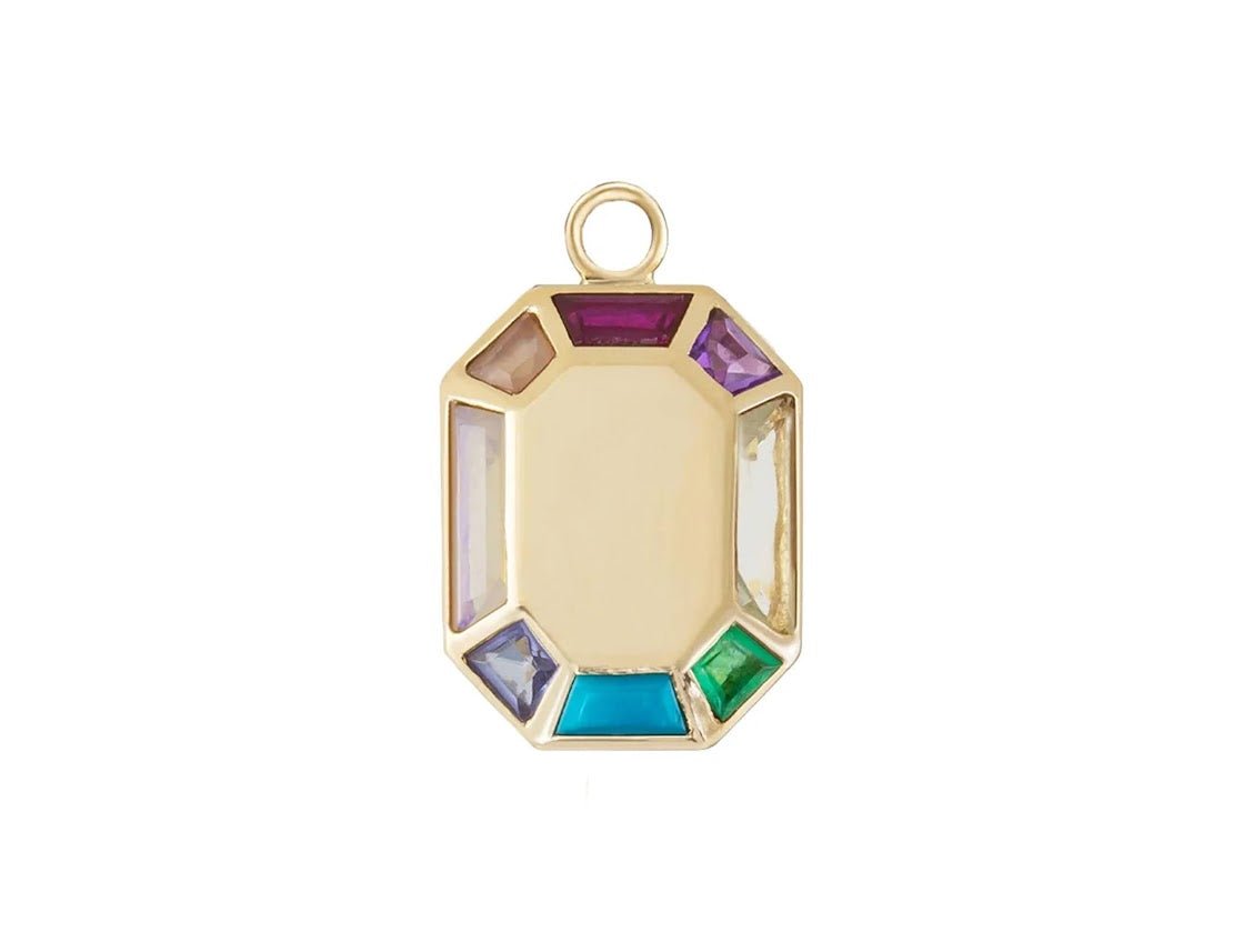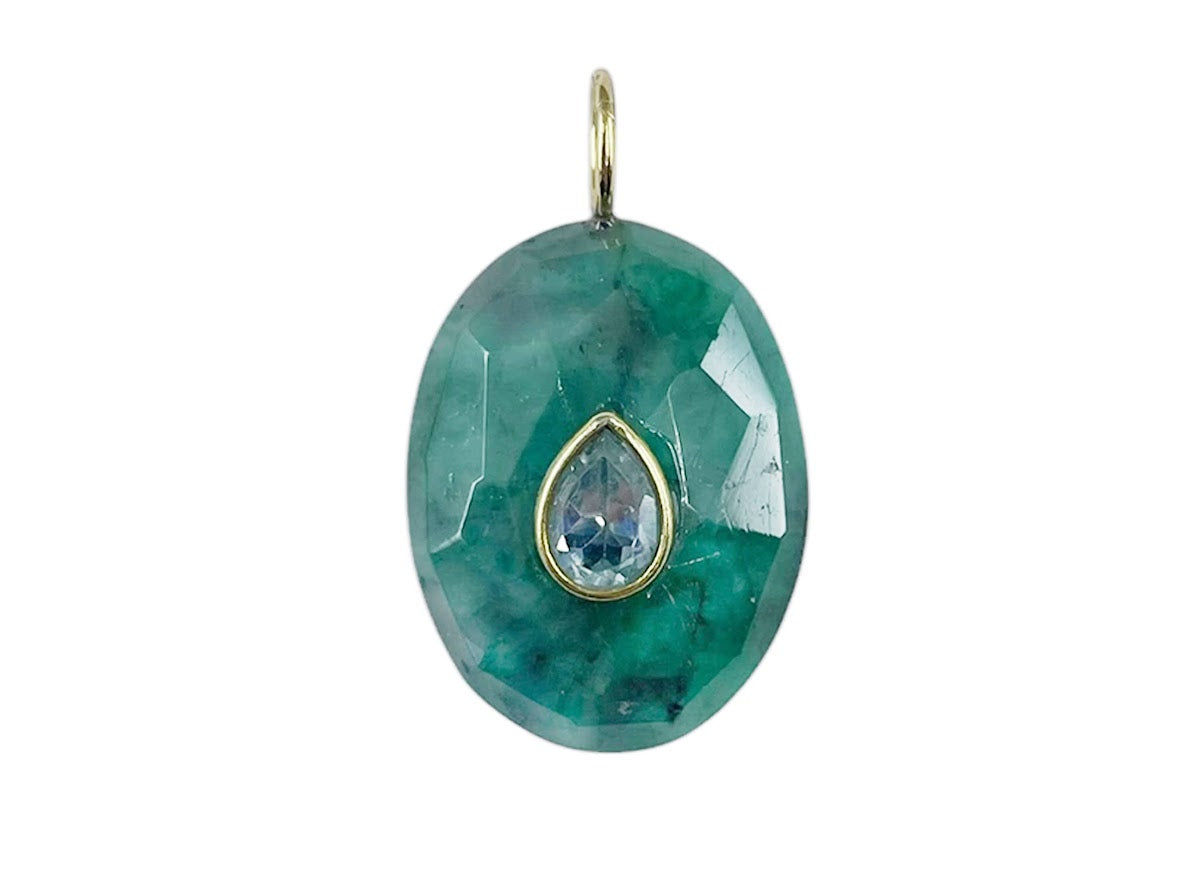 Faceted Emerald Charm with Pear-Shaped White Topaz