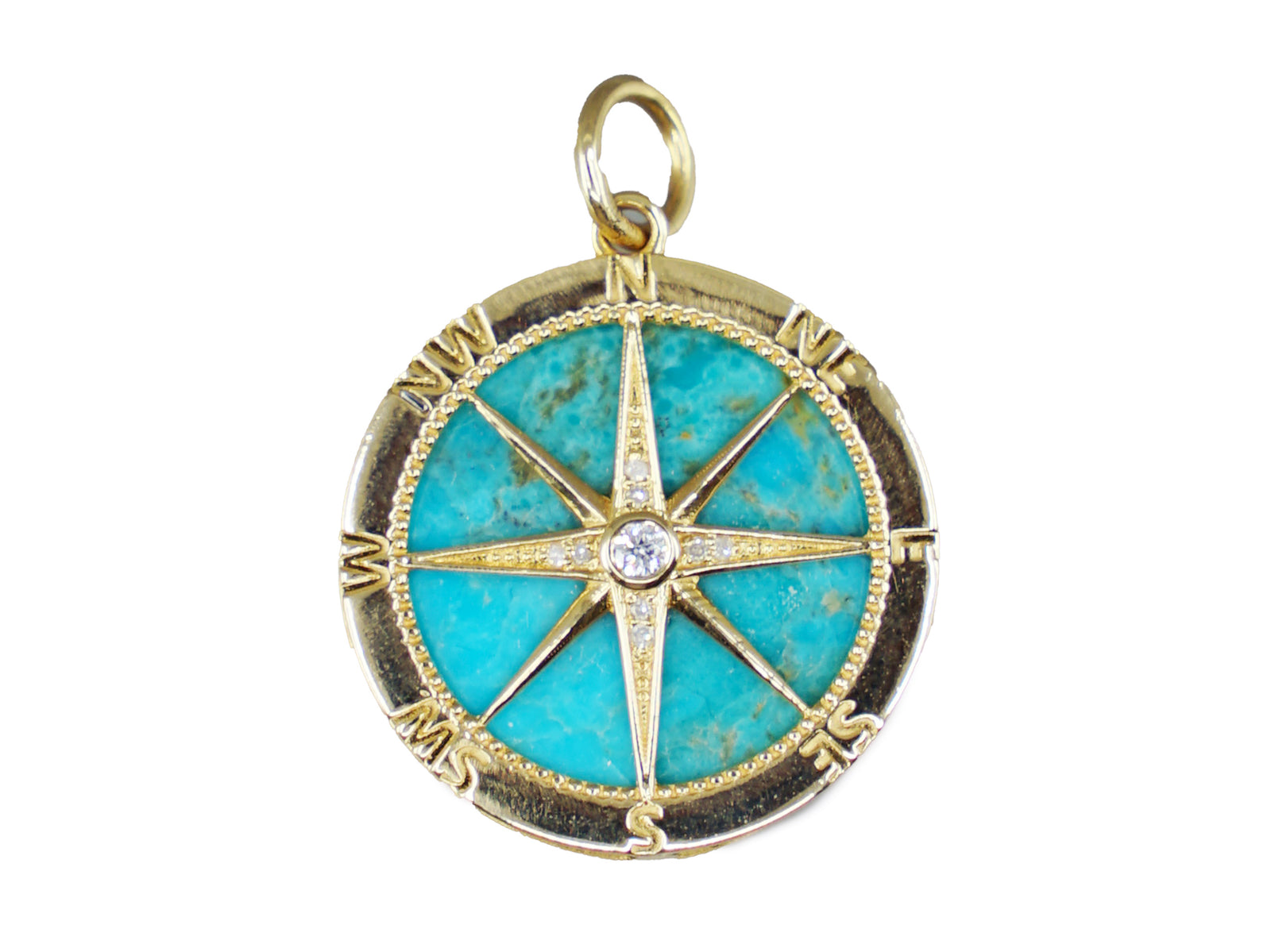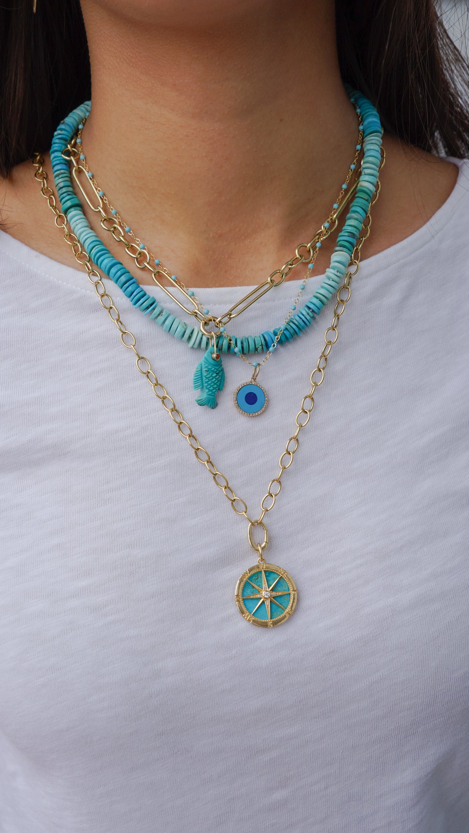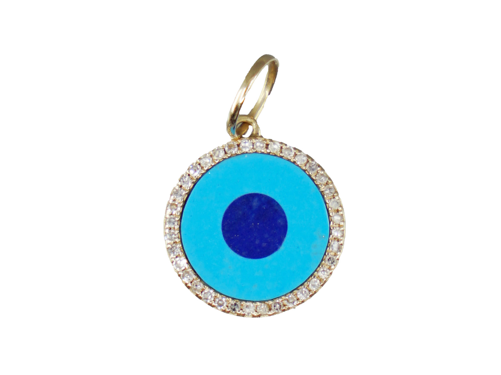 14k Turquoise and Diamond Abstract Evil Eye Pendant