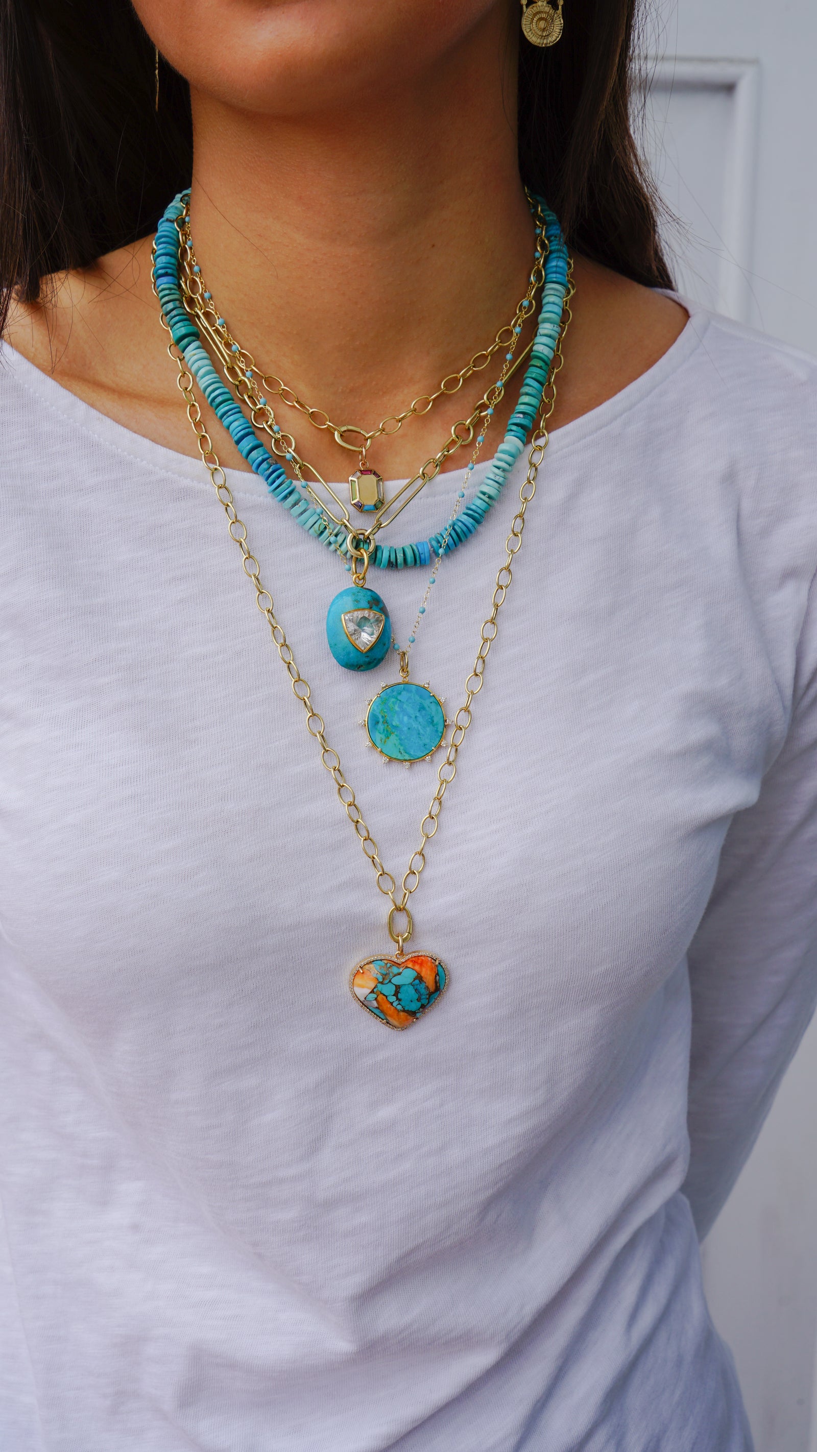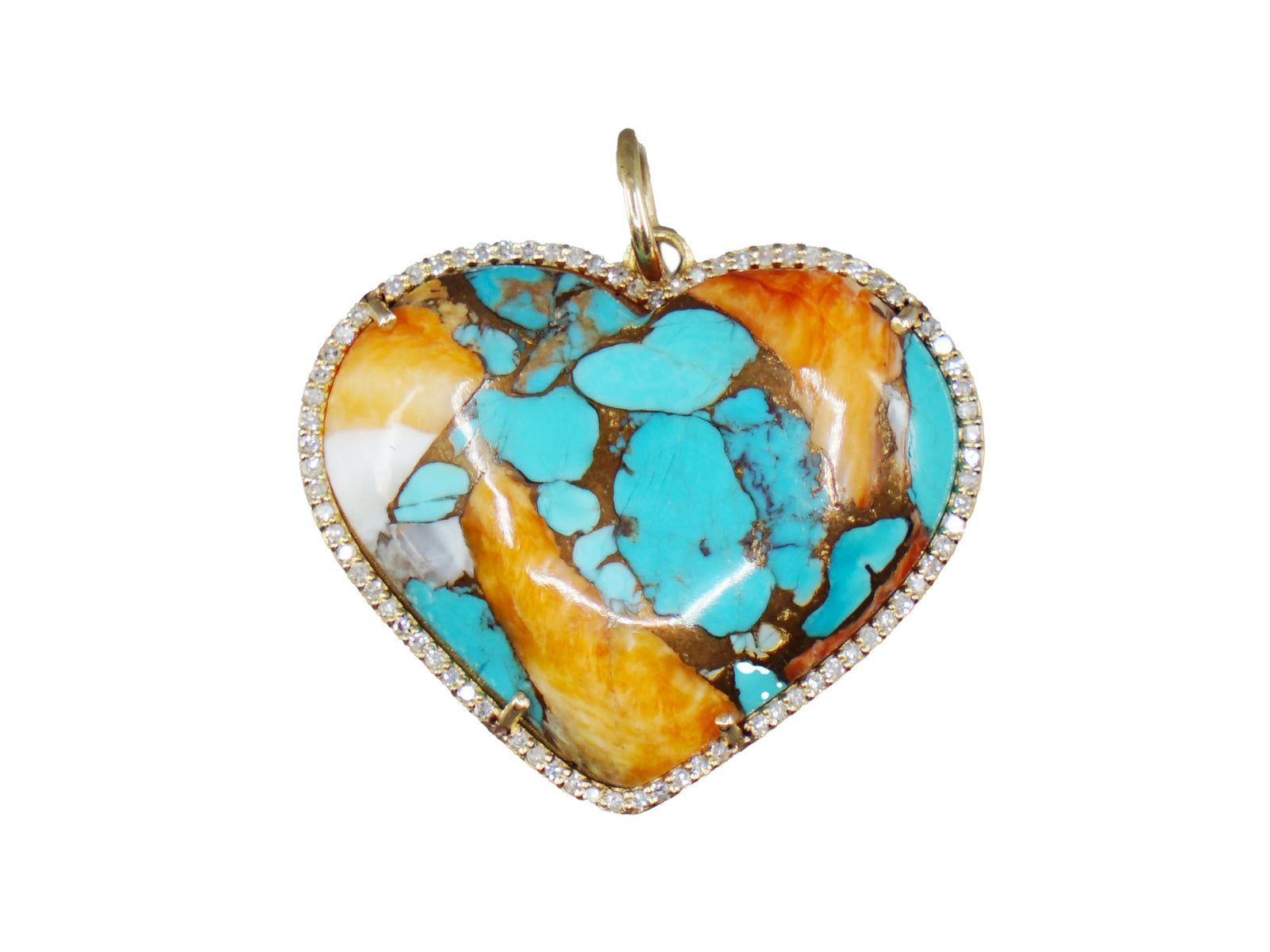 14k Turquoise and Diamond Mosaic Heart Pendant