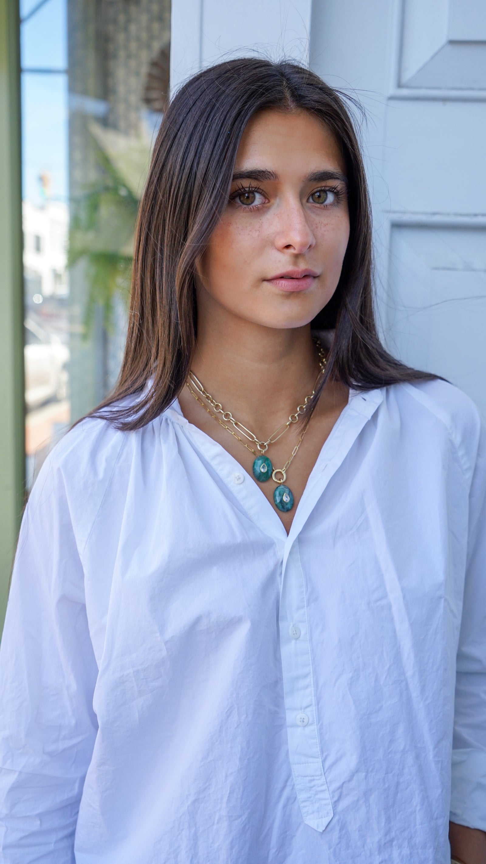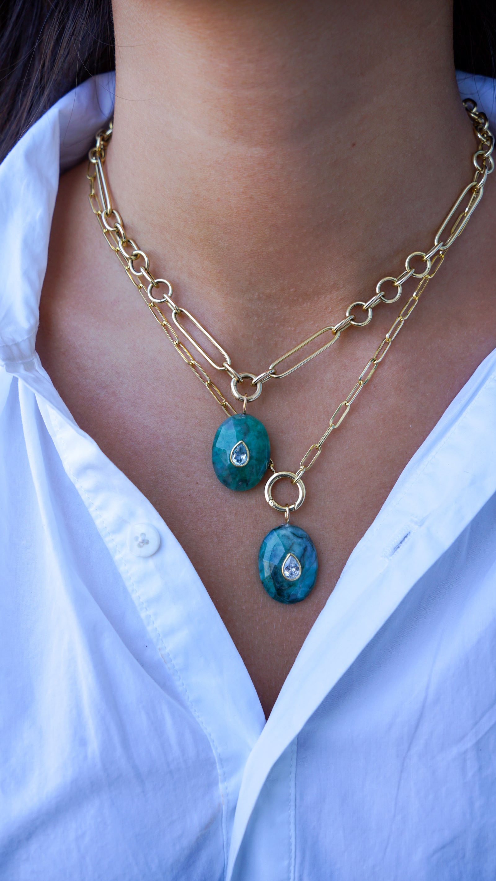 Chrysoprase Charm with Marquise Aquamarine Stone