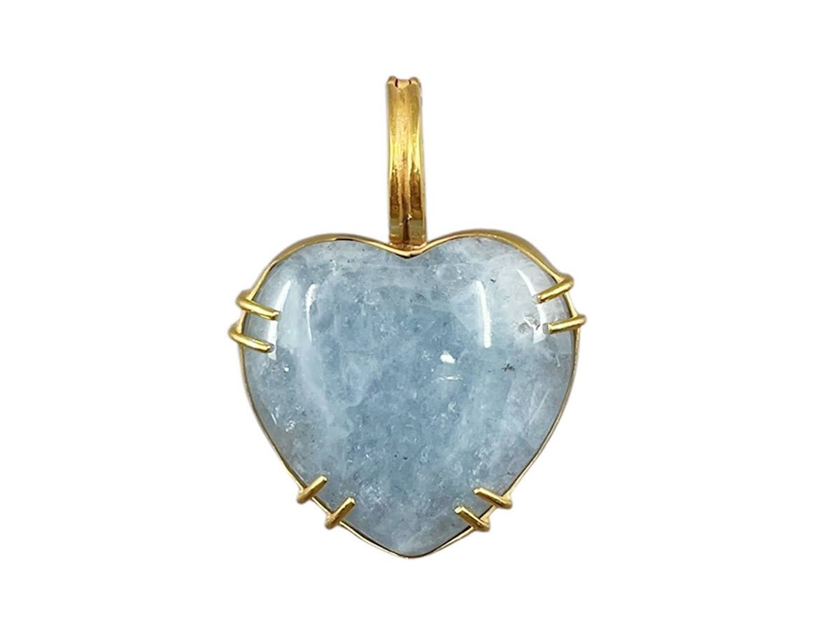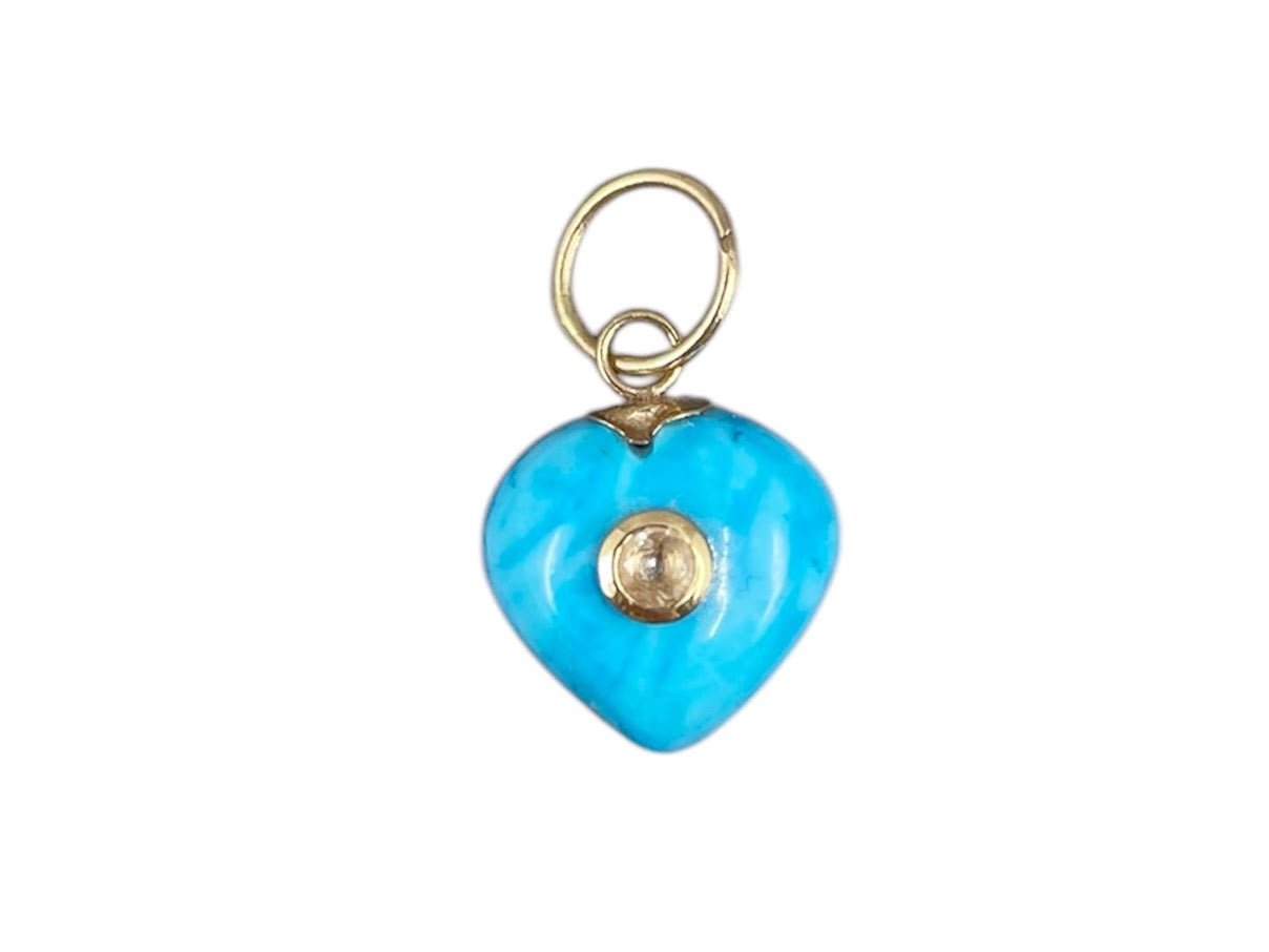 14k Turquoise Heart Charm with Bezel Set White Topaz