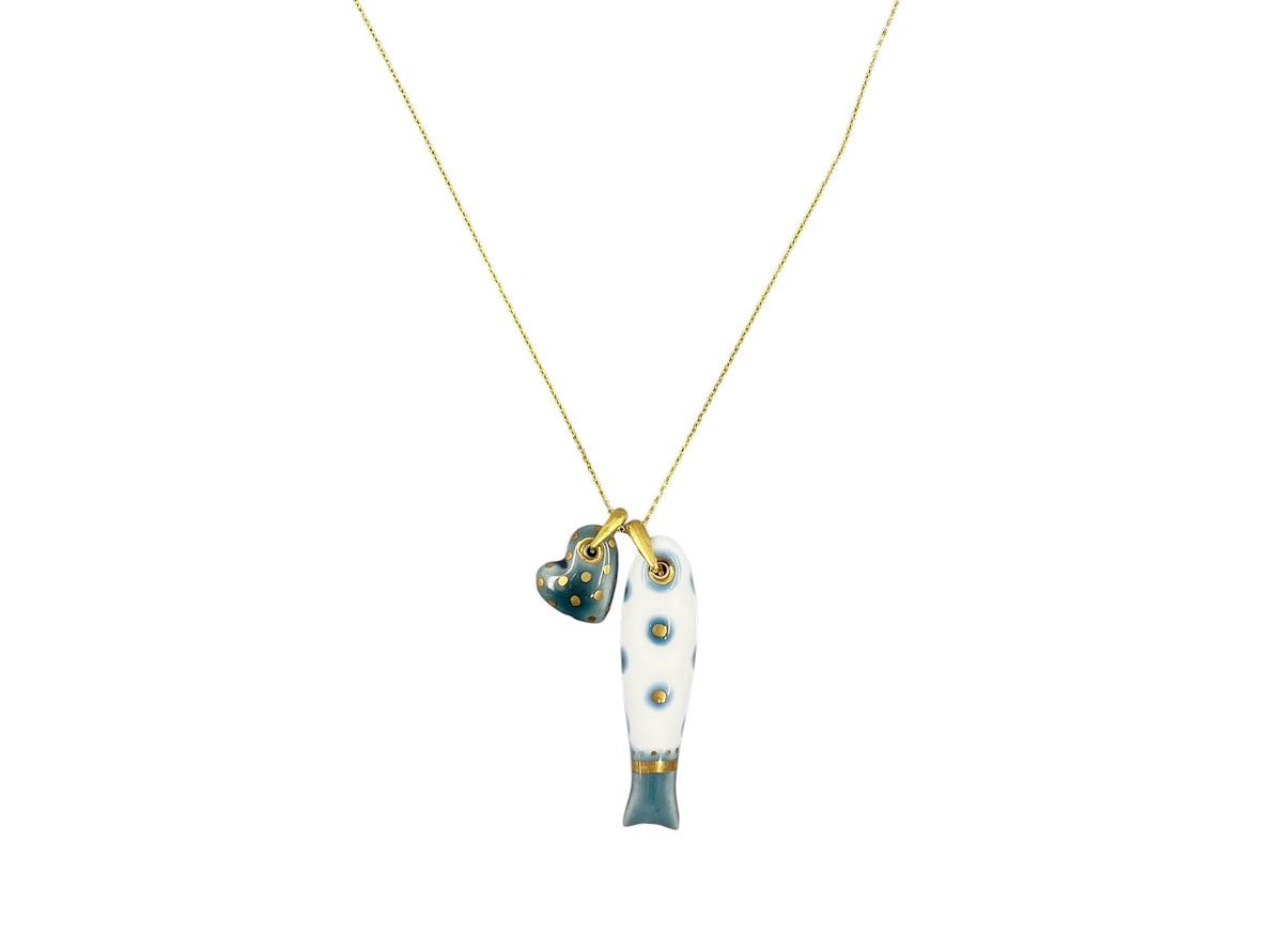 Handpainted Italian Porcelain Turquoise and Gold Striped Fish Charm