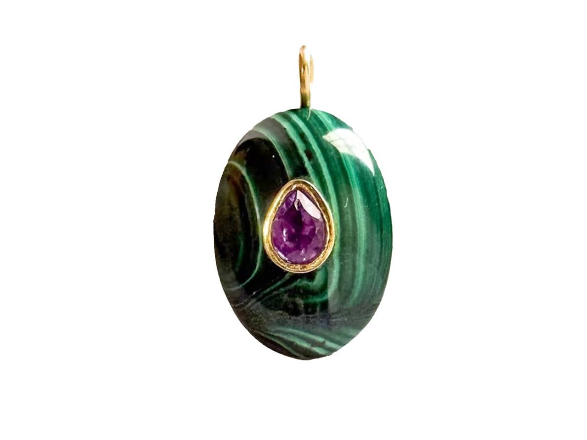 Handpainted Italian Porcelain Green and Gold Small Shell Charm