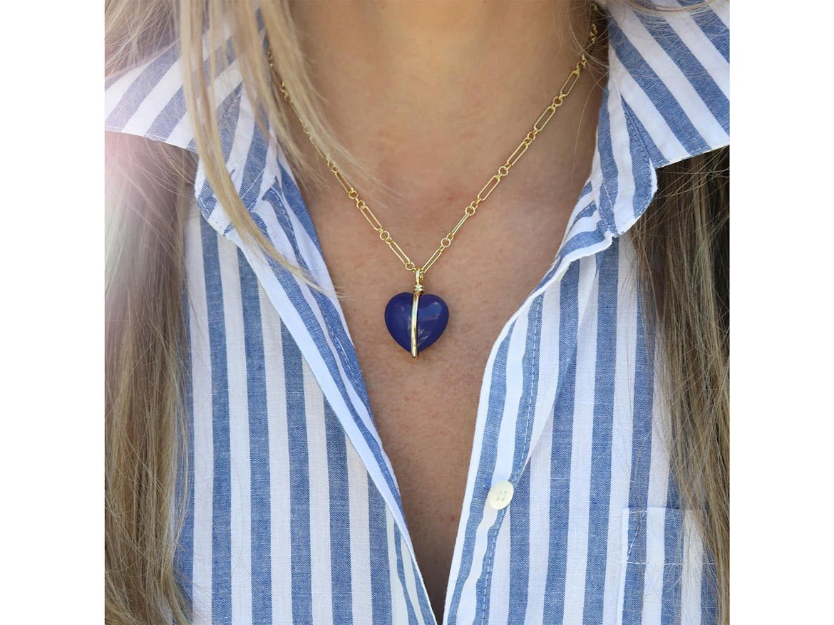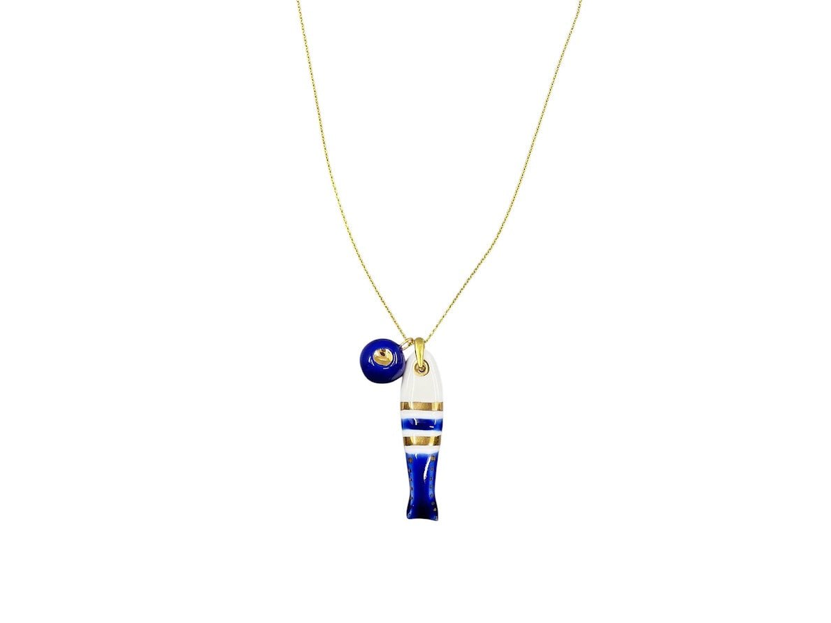 Handpainted Italian Porcelain Turquoise, Navy, and Gold Striped Fish Charm