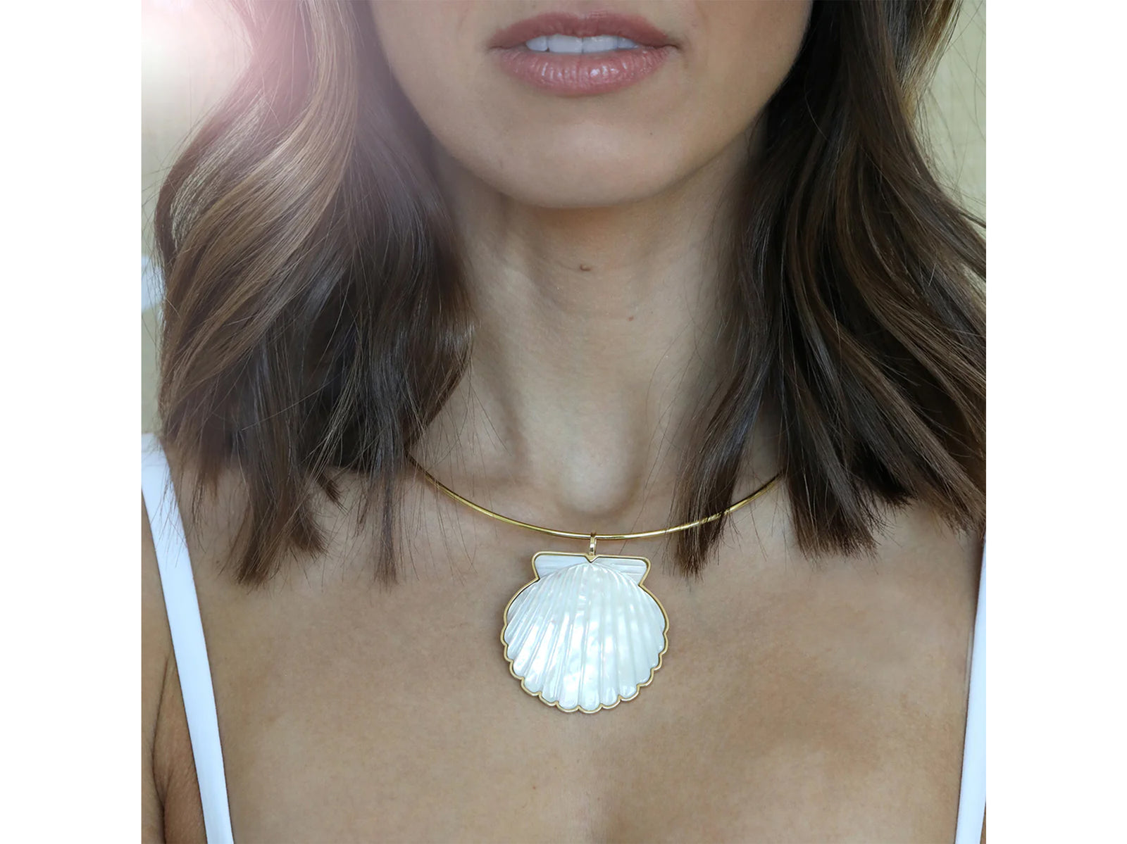Handpainted Italian Porcelain Aqua and Gold Shell Charm