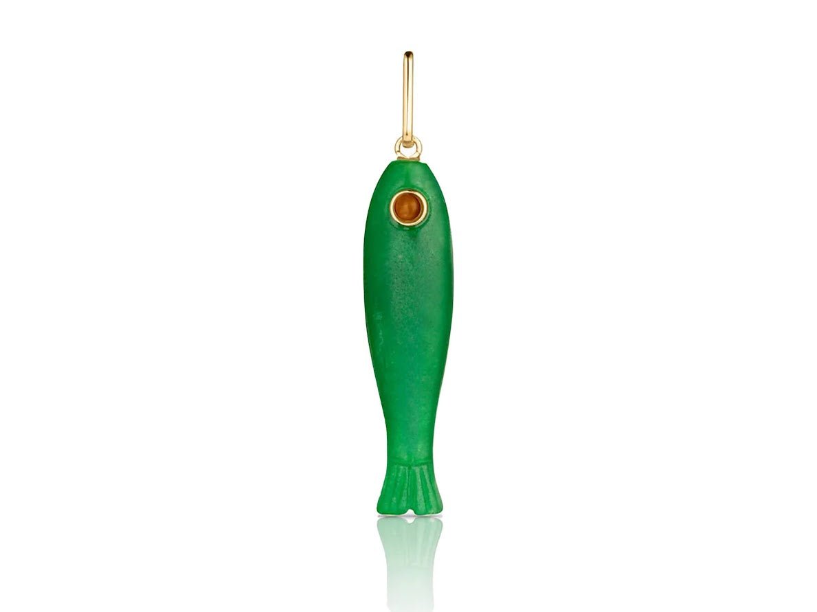 Handpainted Italian Porcelain Green and Gold Spotted Big Fish Charm