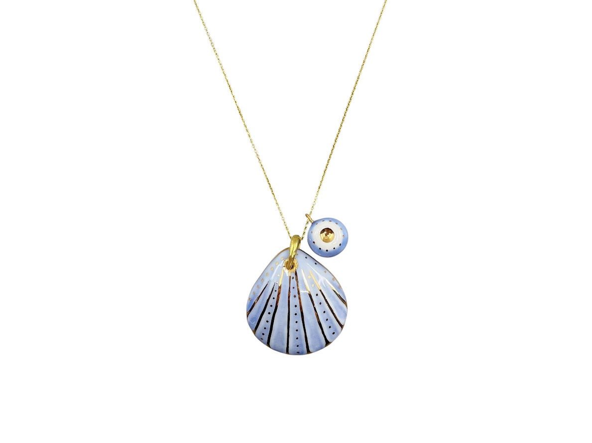 Handpainted Italian Porcelain Light Blue and Gold Medium Shell Charm