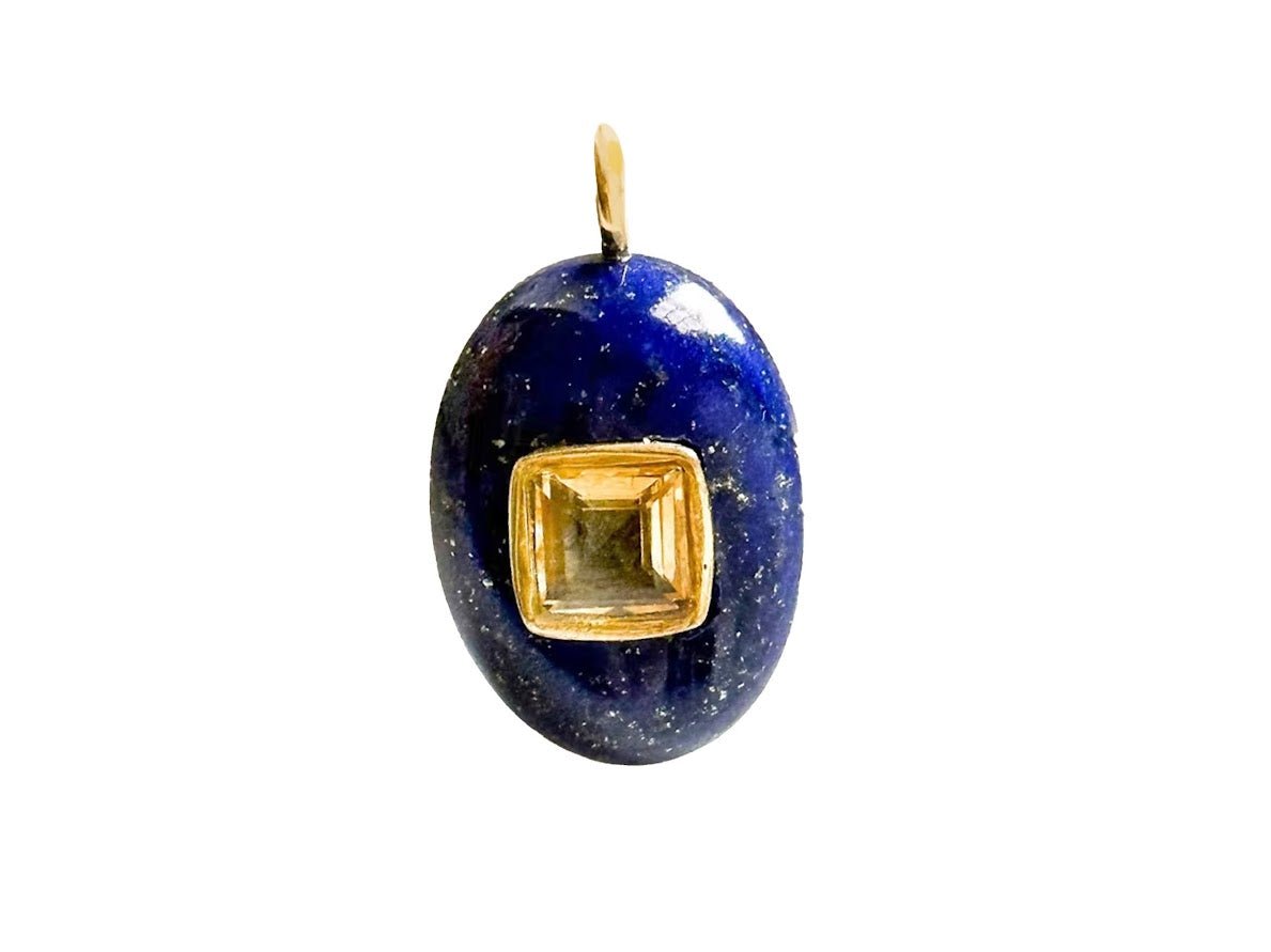Handpainted Italian Porcelain Navy and Gold Shell Charm