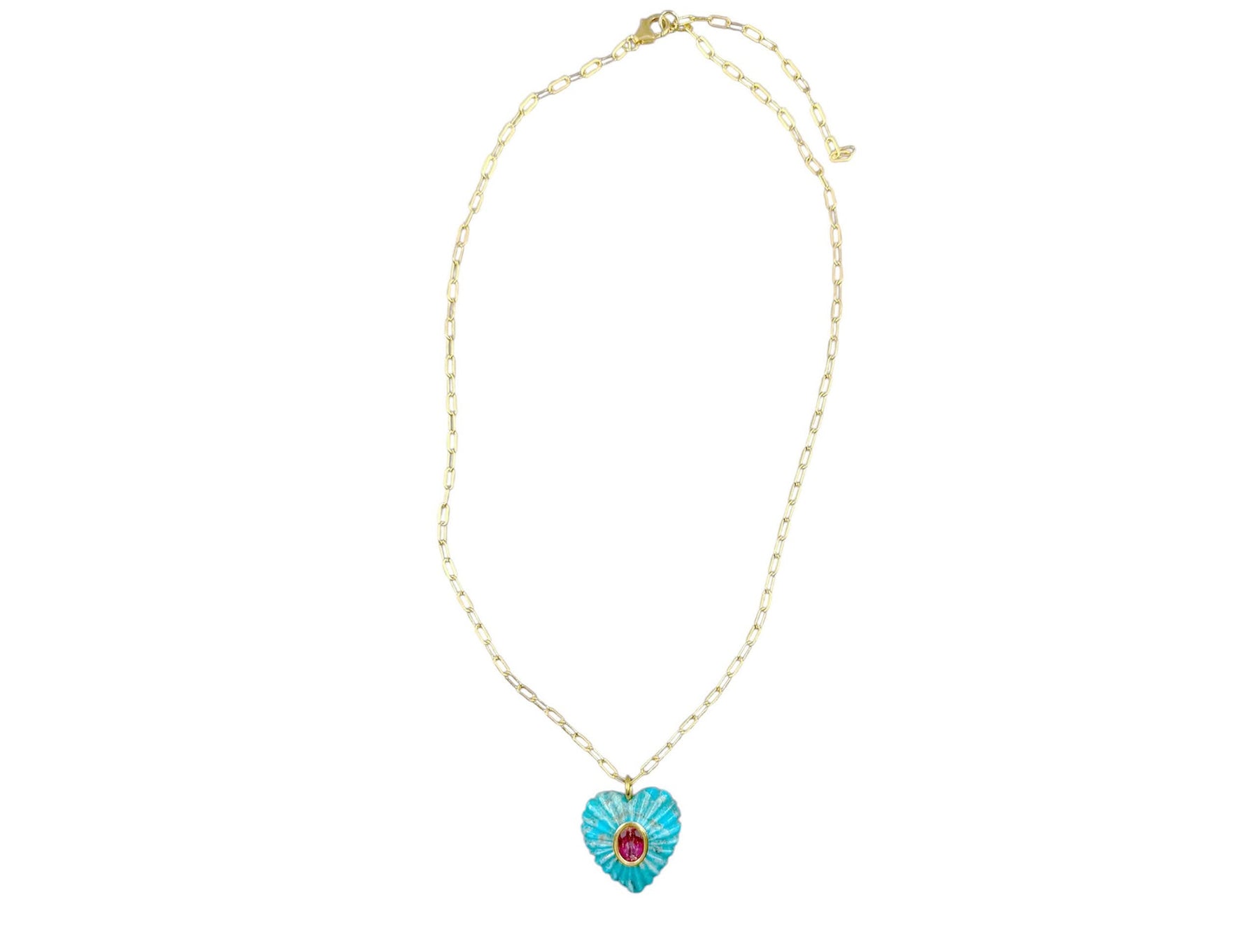 Carved Turquoise and Tourmaline Heart Charm Necklace