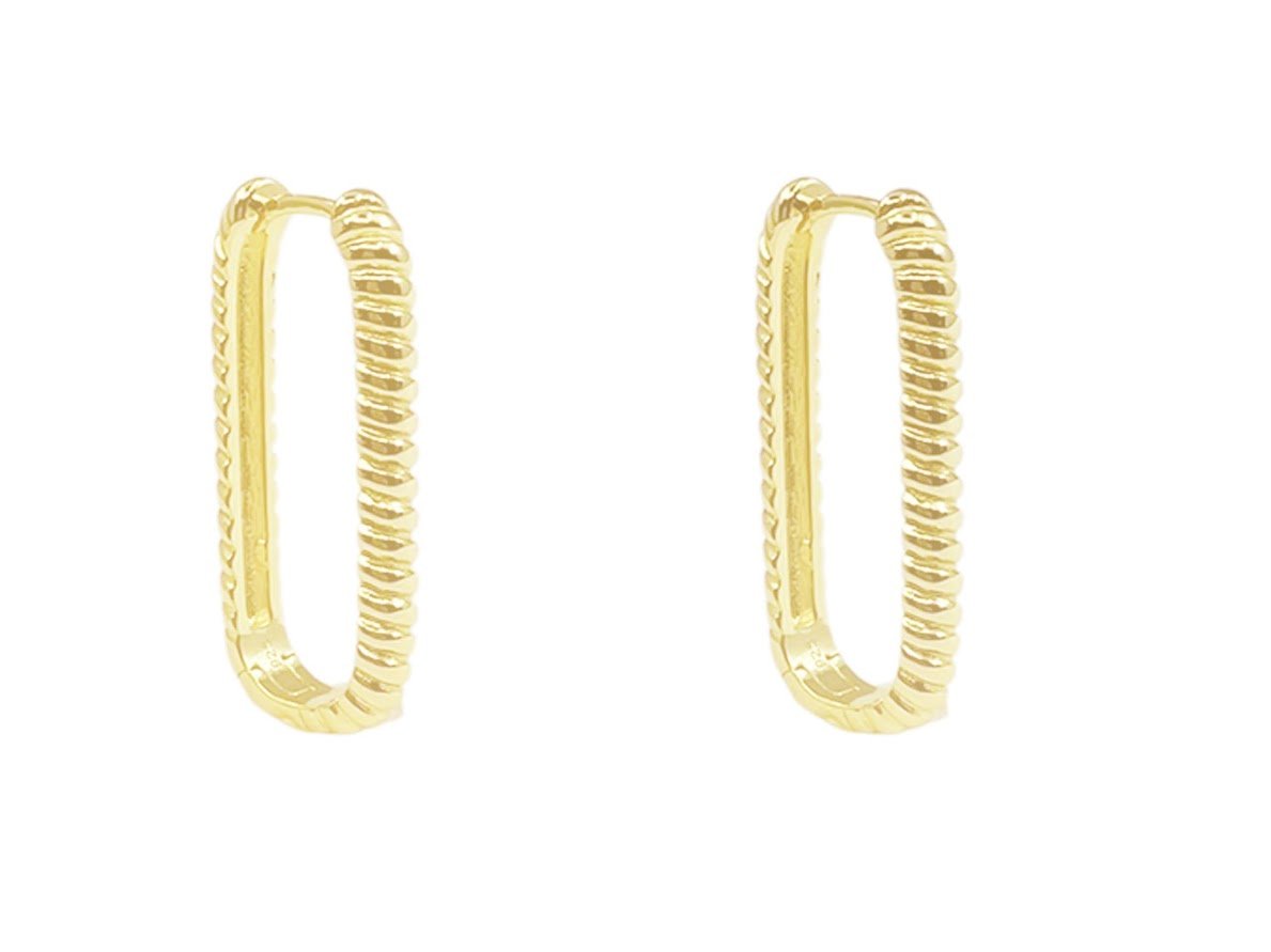 Gold Ridged Rectangular Hoops