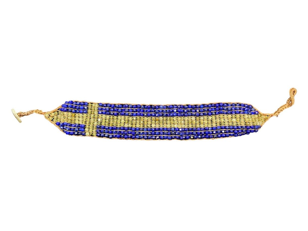 Lapis and Green Garnet Crocheted Bracelet.