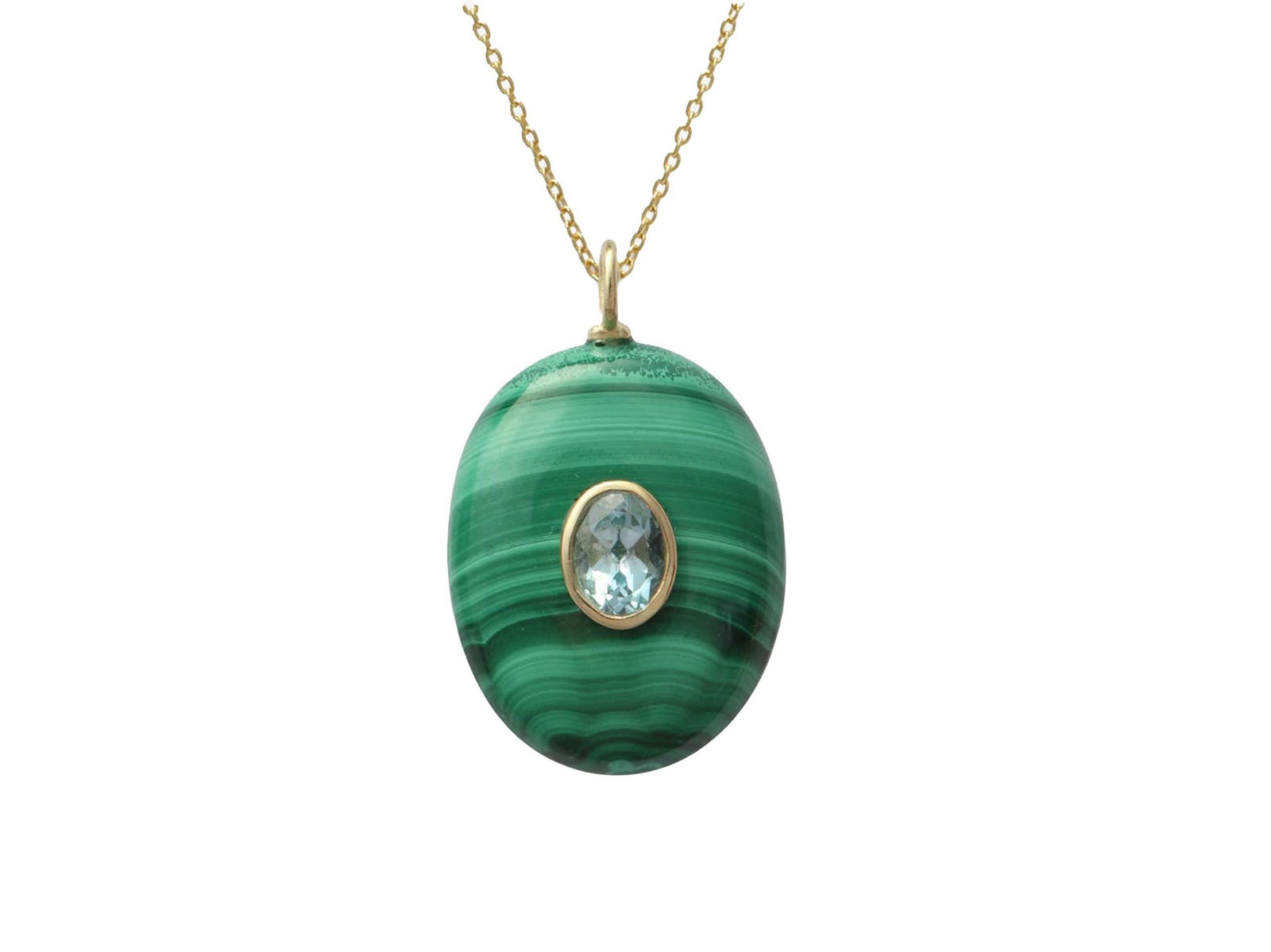 Oval Malachite and Blue Topaz Charm Necklace