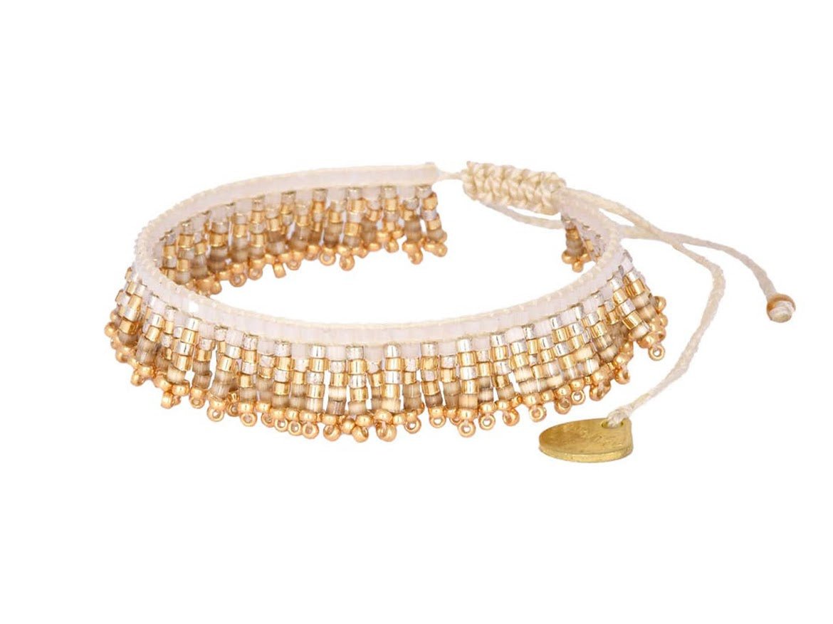 Gold and White Beaded Fringe Bracelet