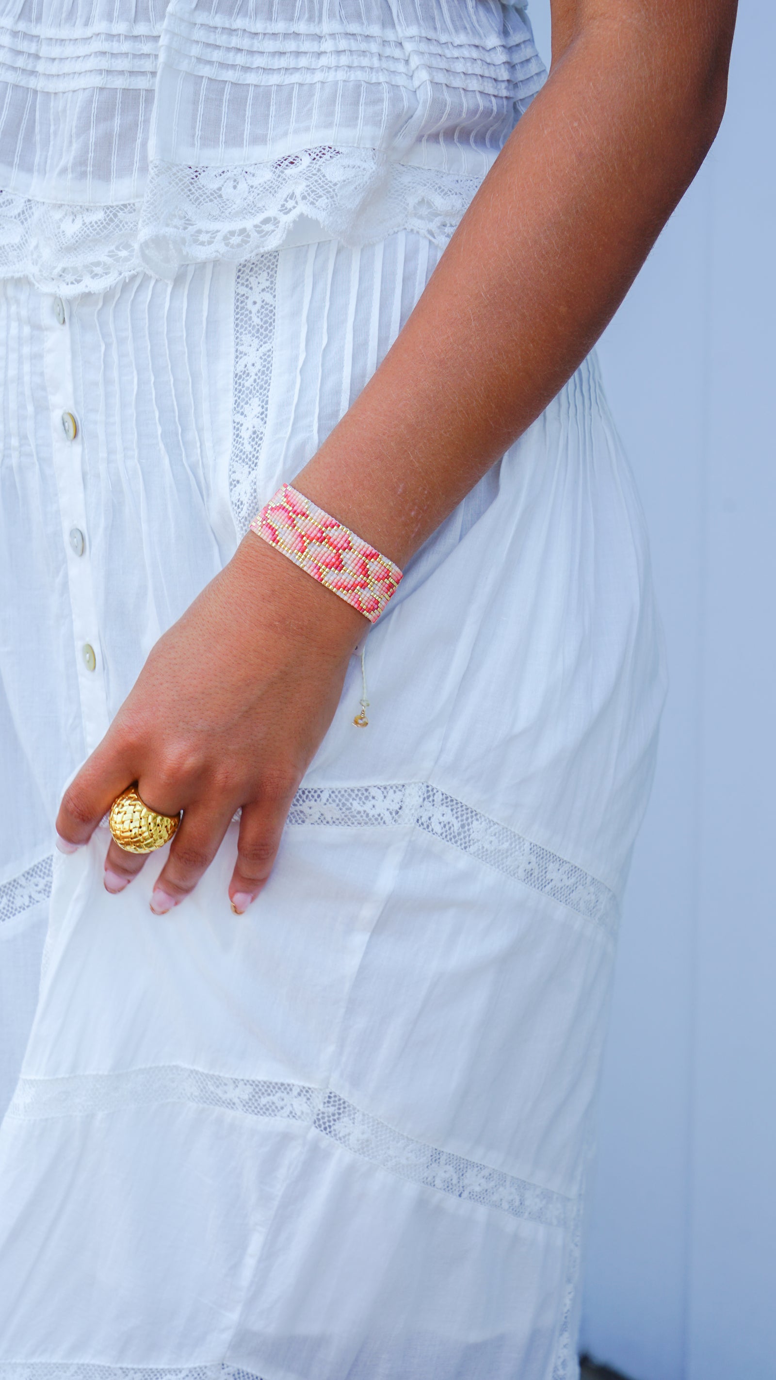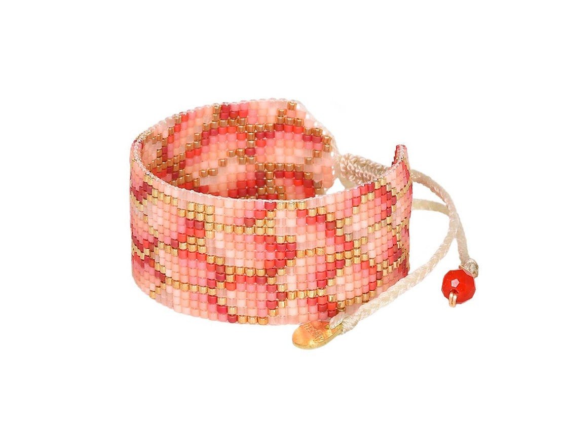 Gold, Coral, Salmon, and Pink Beaded Bracelet