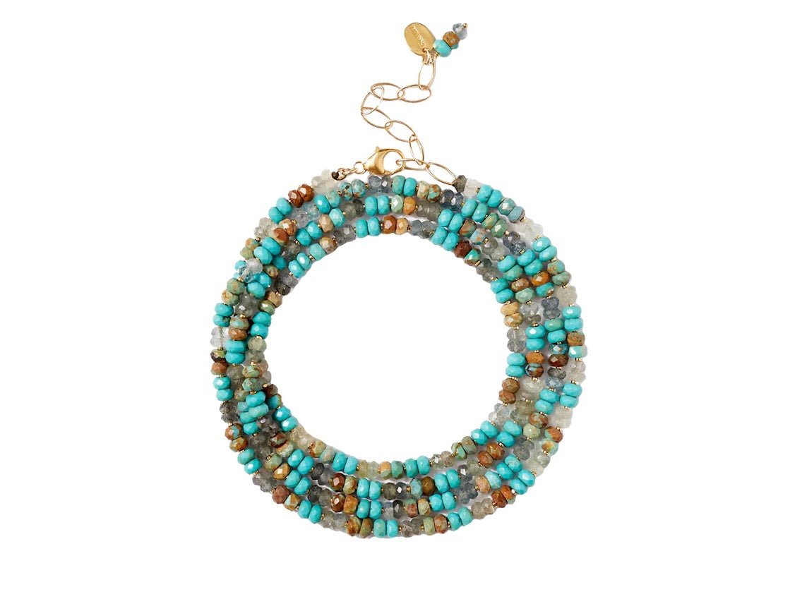 Turquoise and Moss Aquamarine Wrap Bracelet