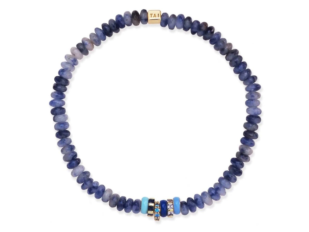 Blue Sodalite Bead Bracelet with Enamel and CZ Roundels