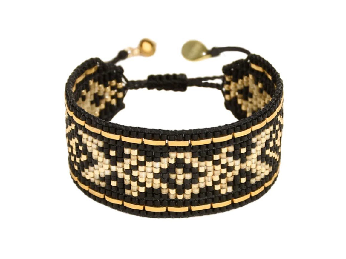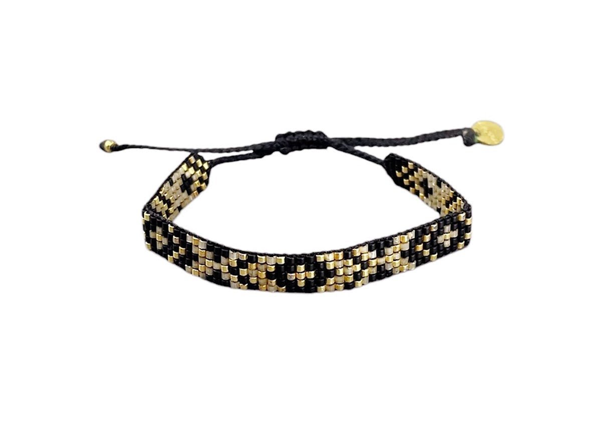 Black and Gold Diamond-Patterned Beaded Bracelet