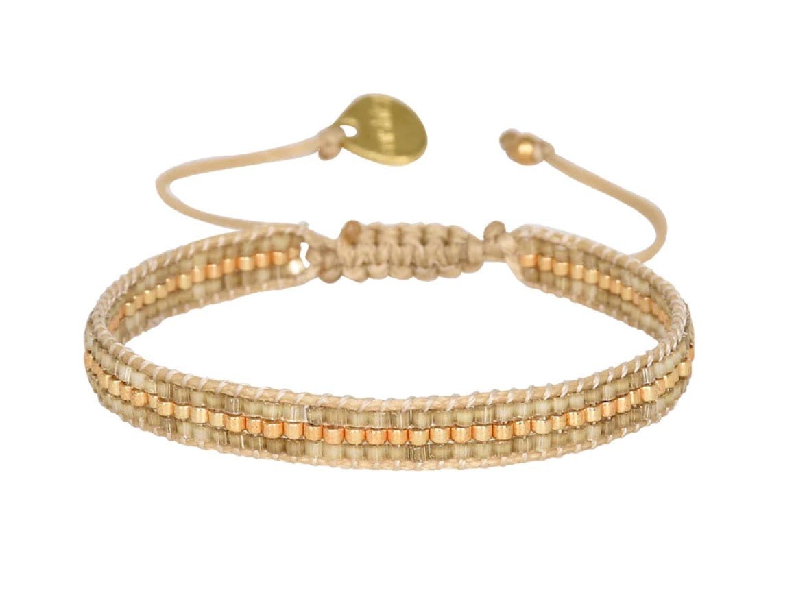 Taupe and Gold Beaded Line Bracelet