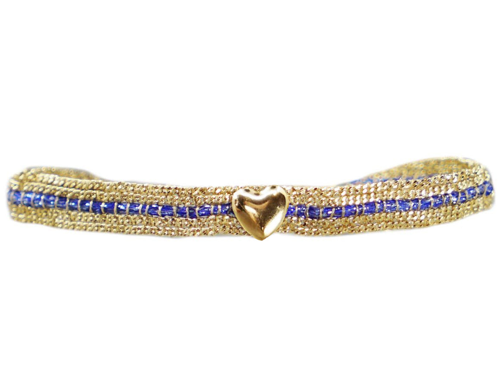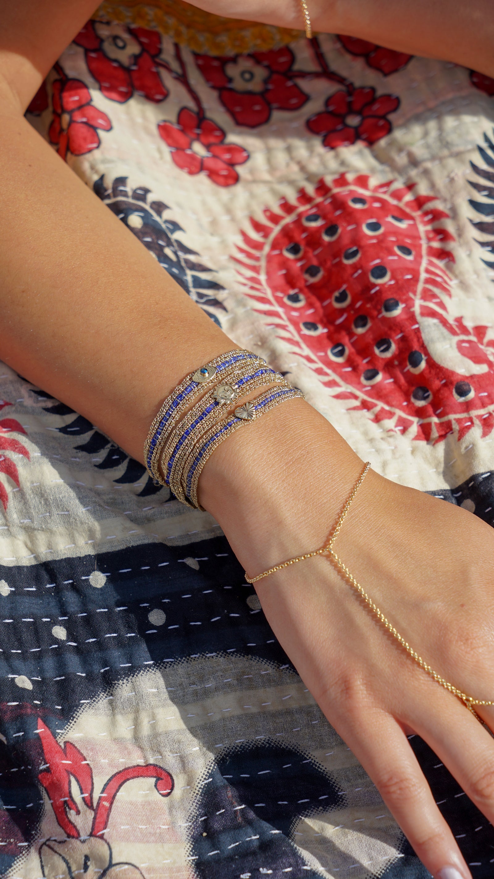 Wider Blue Striped Chain Bracelet with Sun Charm
