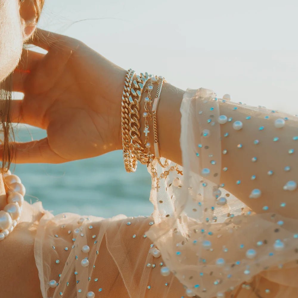 Wider Gold Striped Chain Bracelet with Sun Charm
