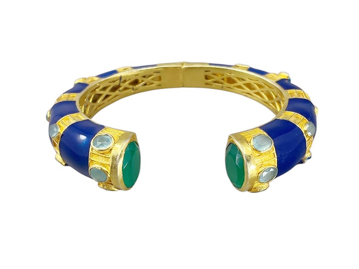 A gold-plated and blue enamel cuff with chrysoprase stones. Made in France.