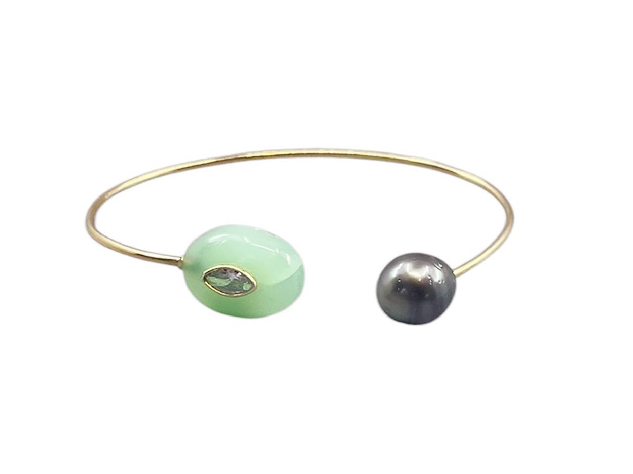 Chrysoprase and Tahitian Pearl Cuff Bracelet