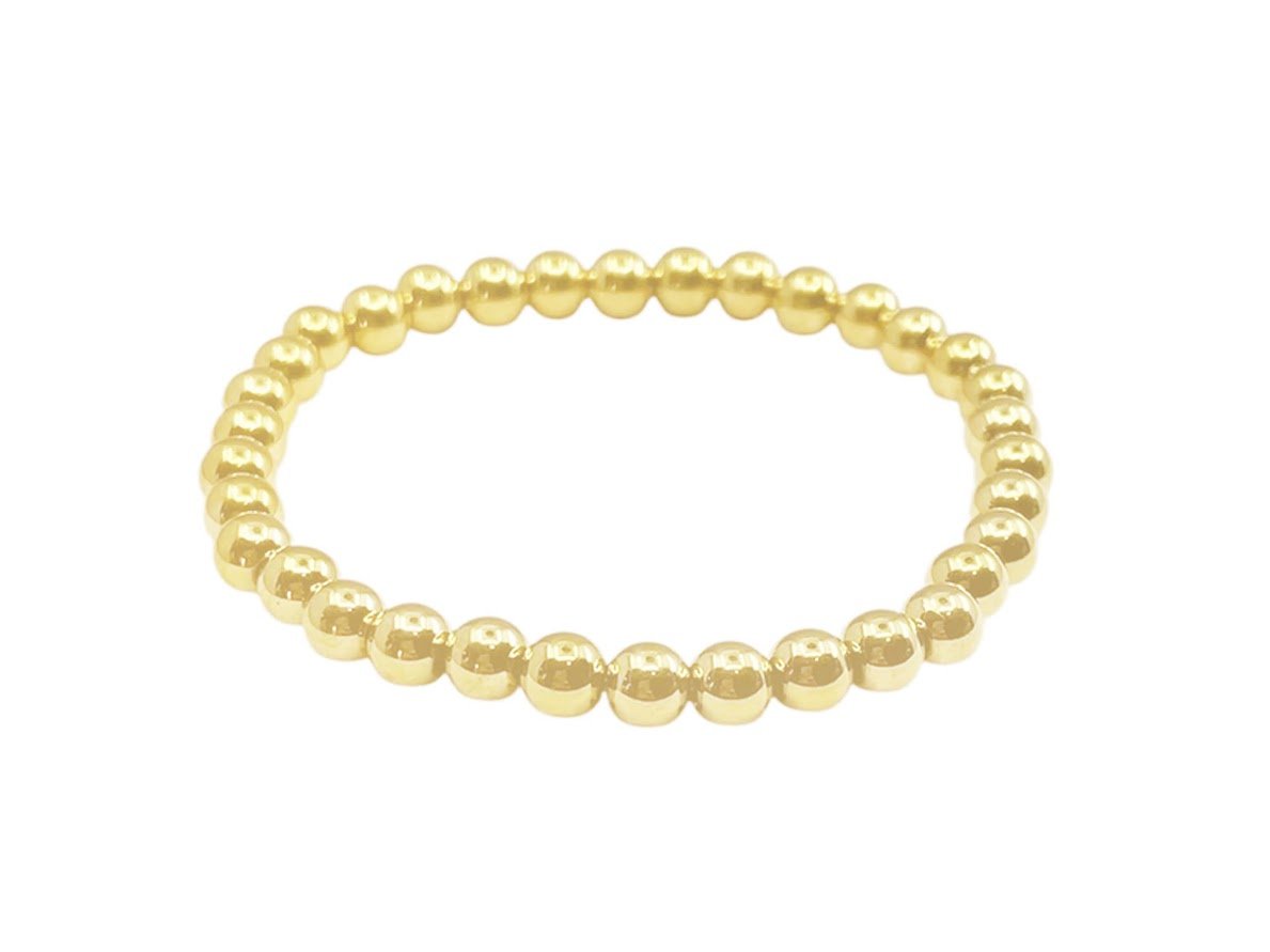 A classic bracelet of 6mm beads that made of gold-plated stainless steel with a PVD waterproof coating. Beads are strung on durable elastic to a length of 6.5 inches.