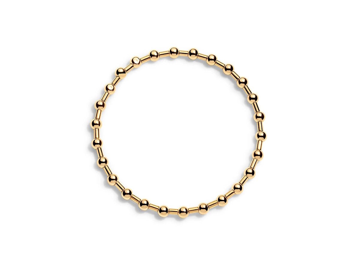 This charming stretch bracelet is made of 4mm 14k gold-filled round beads and sleek gold-filled tube beads. 6.75 inches long.