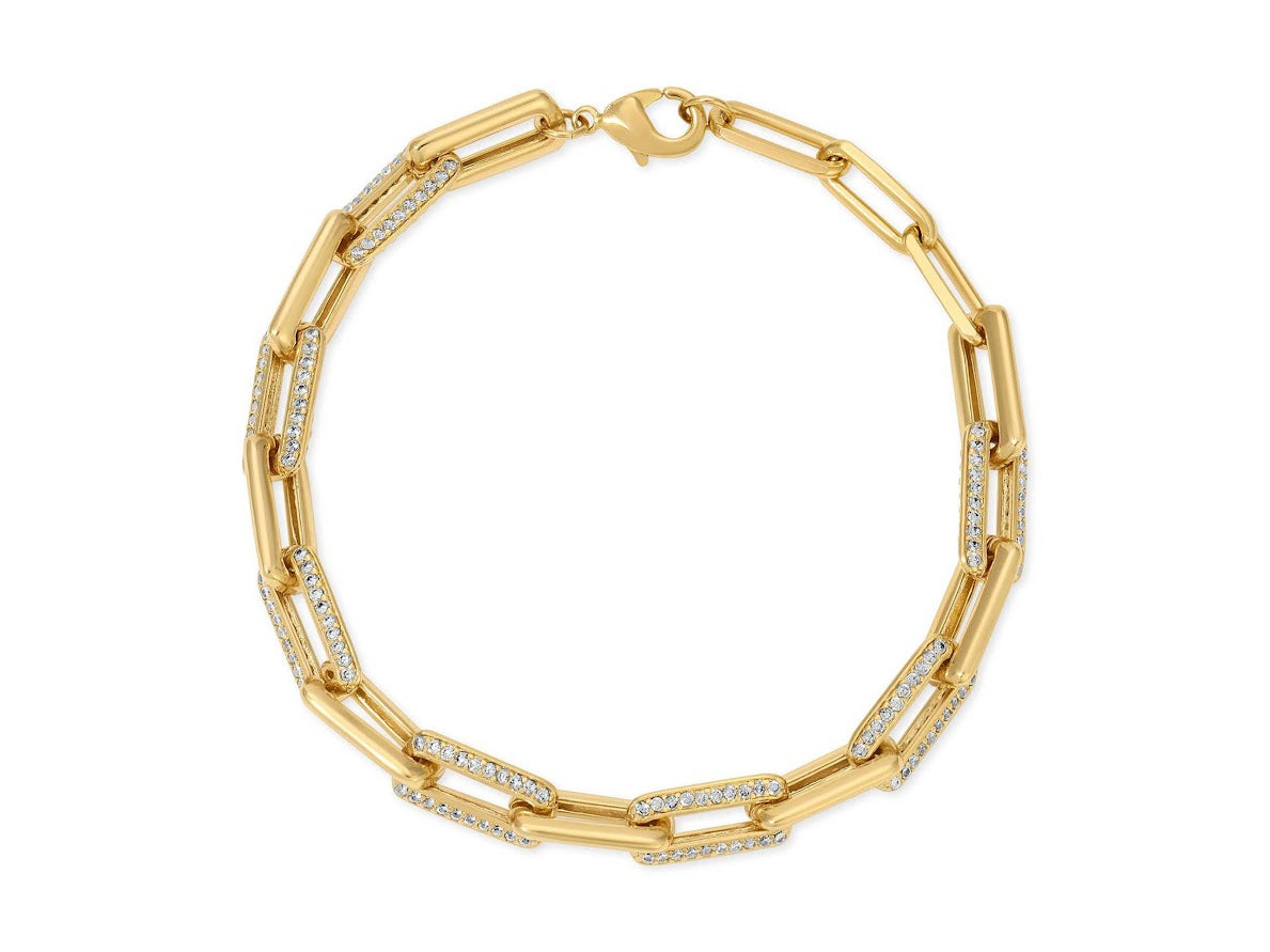 This 18k gold-filled link bracelet is detailed with AAA cubic zirconia along the edges. 7 inches long.