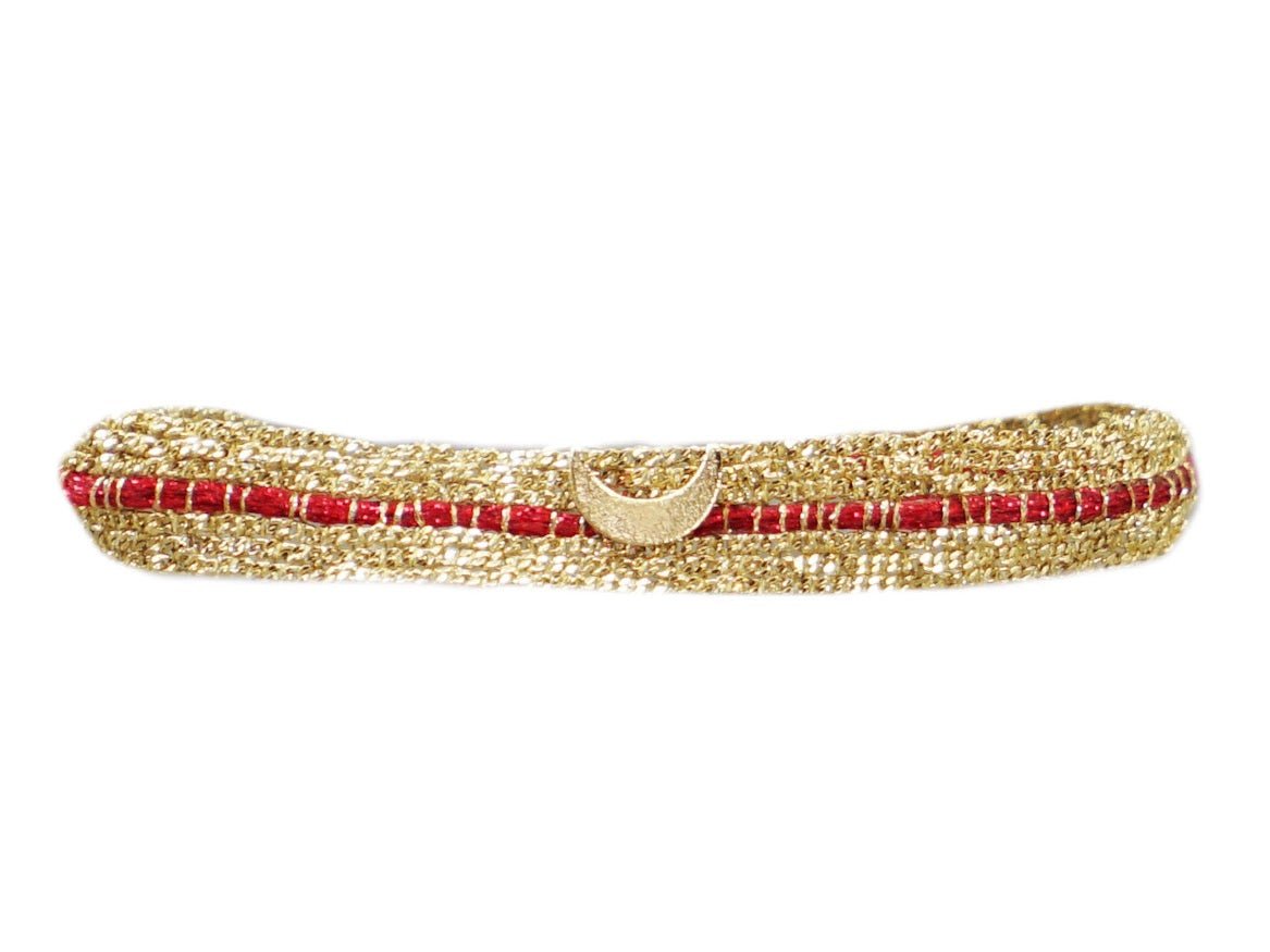 Wider Red Striped Chain Bracelet with Moon Charm