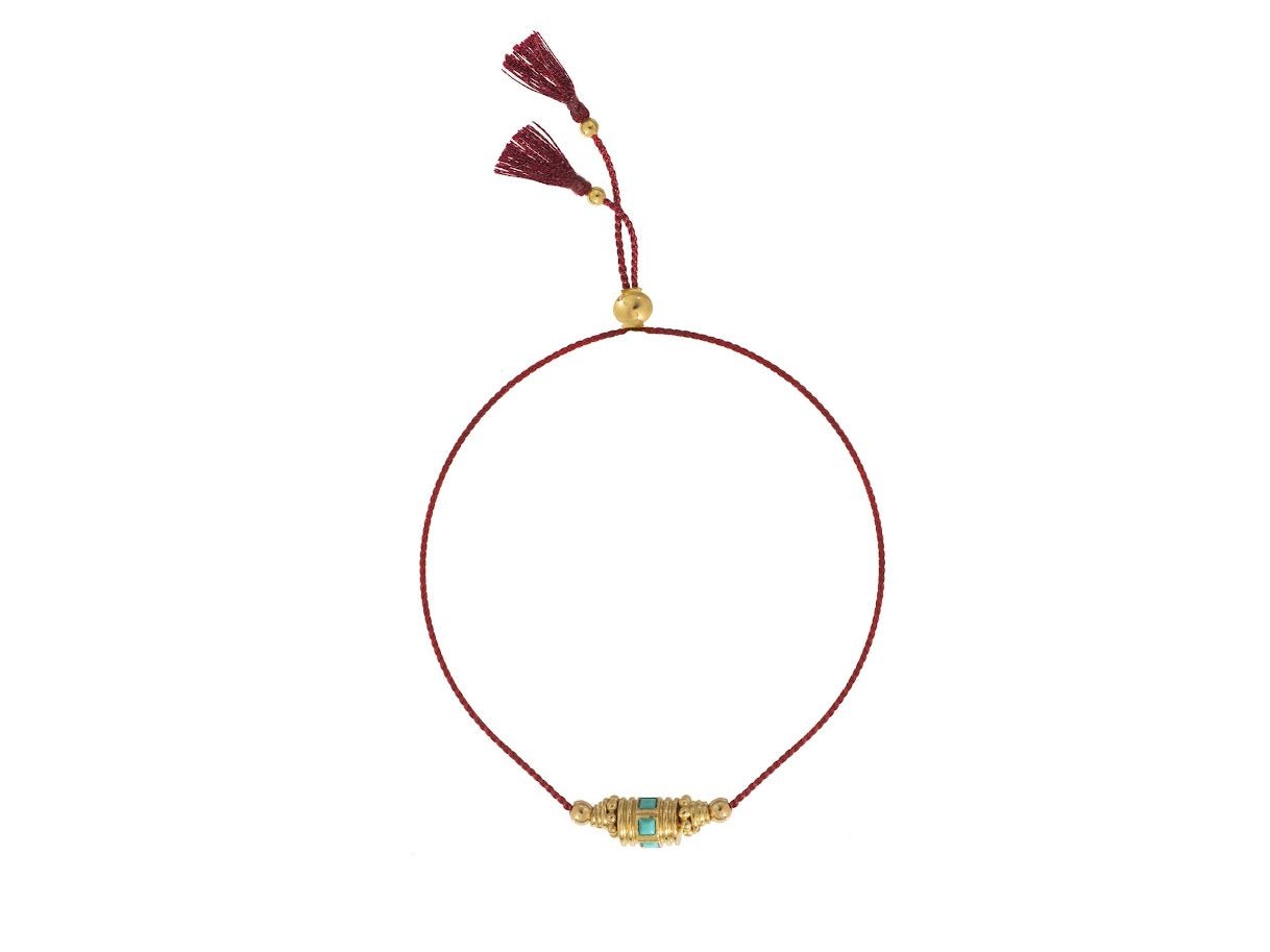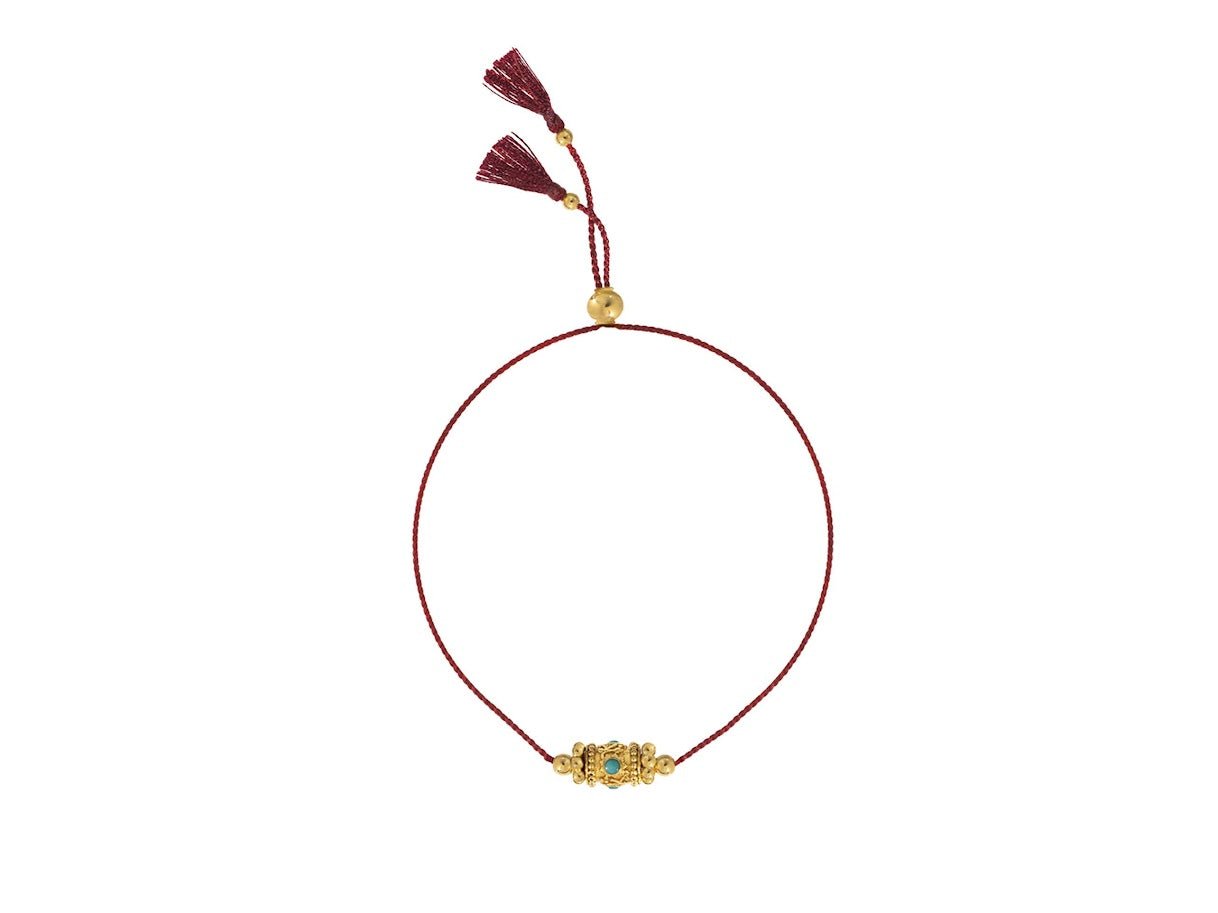 Woven Red Thread Rakhi Bracelet with Turquoise Bead