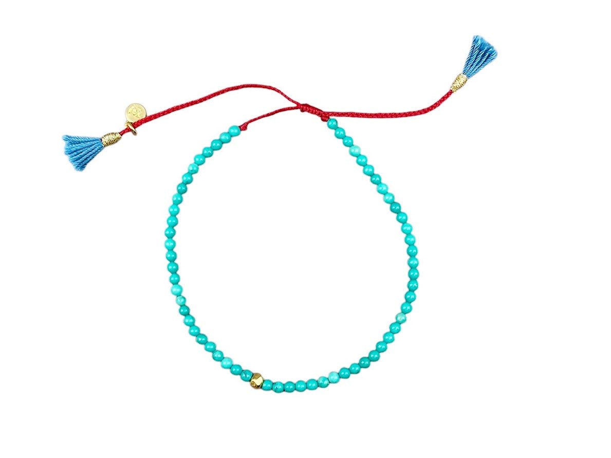 Turquoise with Gold Beads and Red String Bracelet