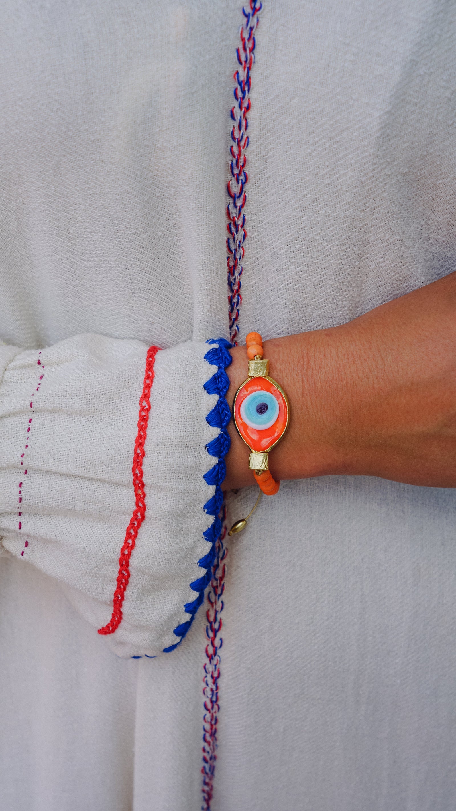 Large Orange Blown Glass Evil Eye Bracelet