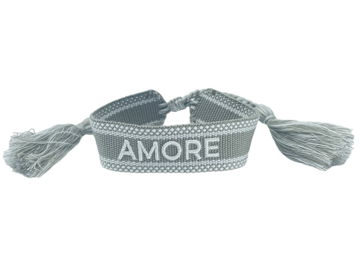 Khaki and White Woven AMORE Bracelet
