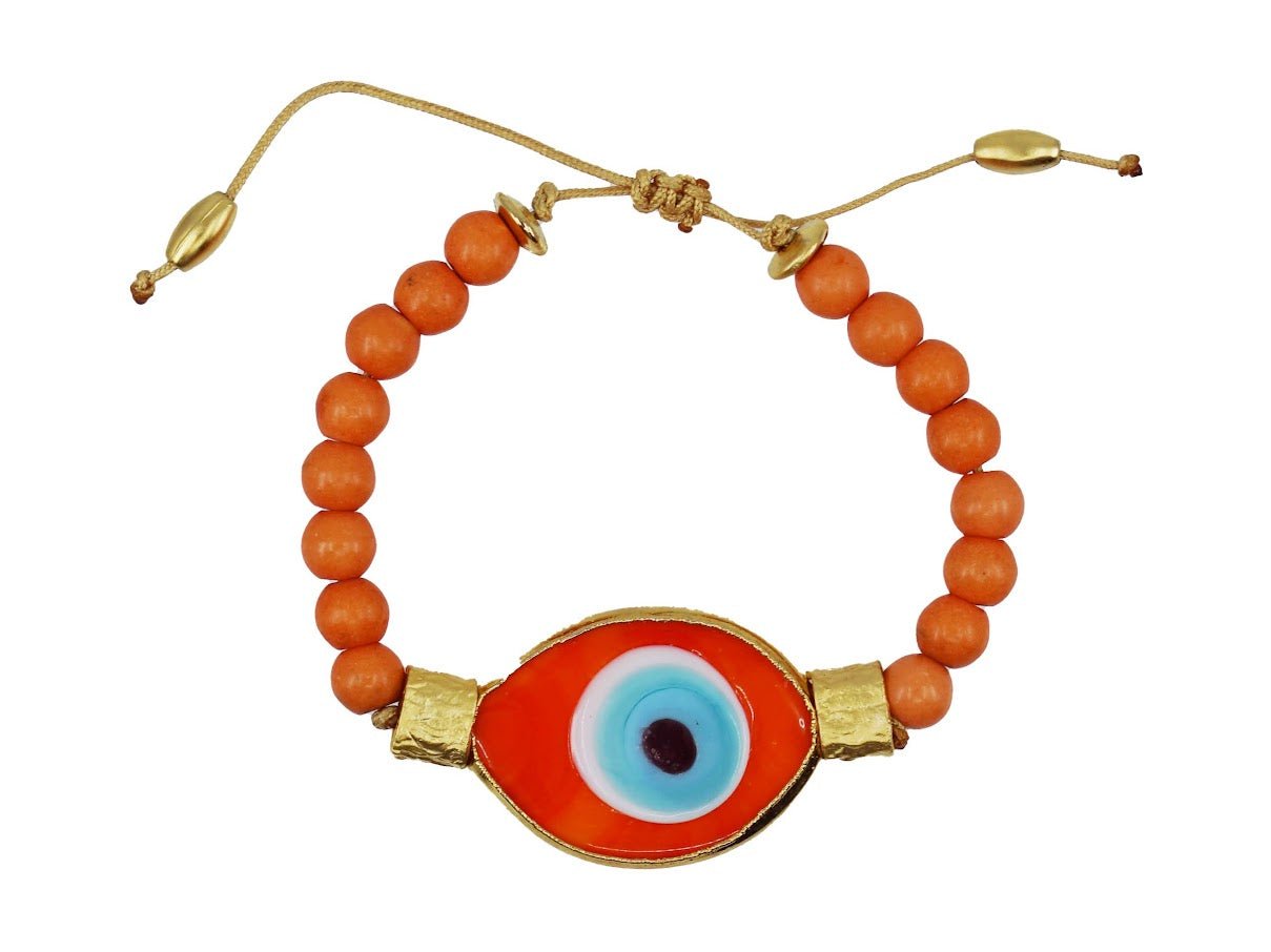 Orange Murano Glass Evil Eye and Bead Bracelet