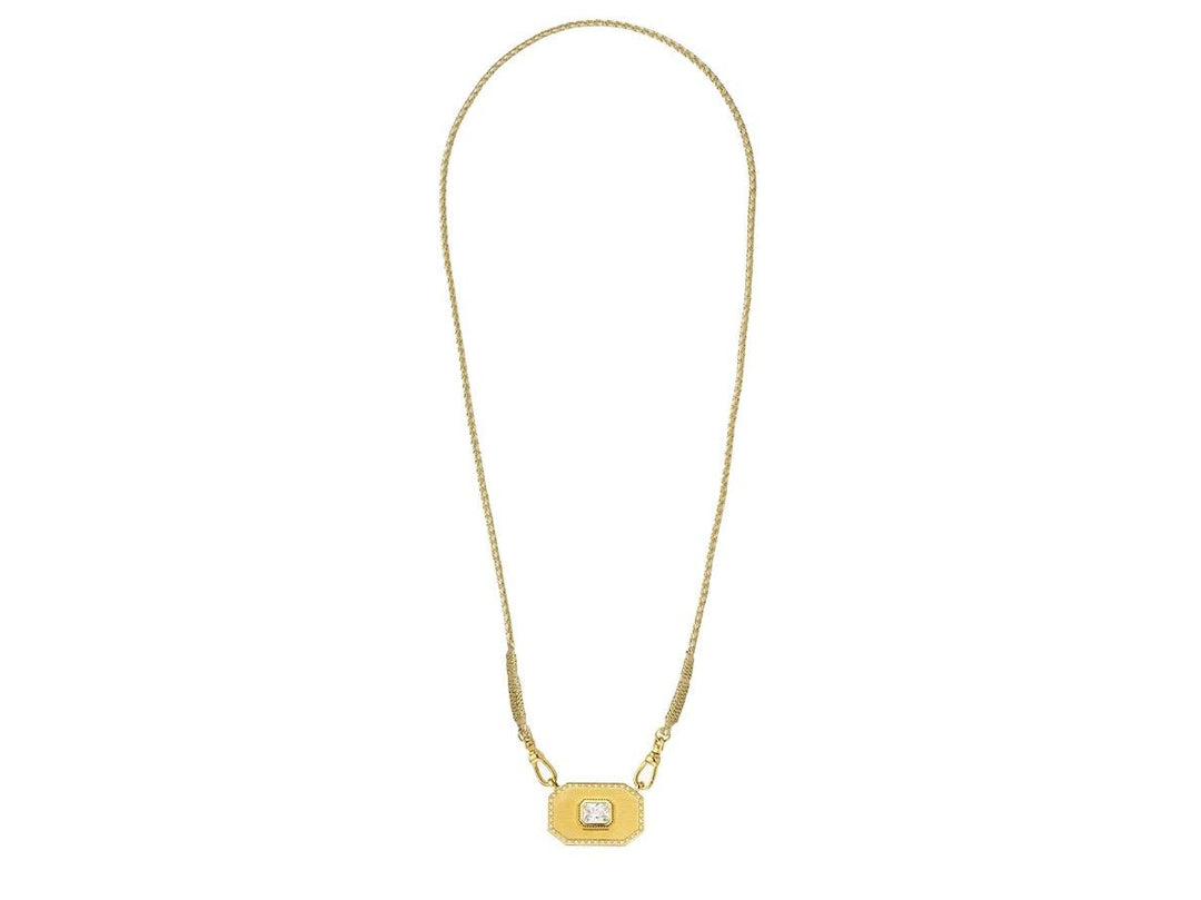 10k Oval Amethyst and Diamond Charm on Silk Necklace