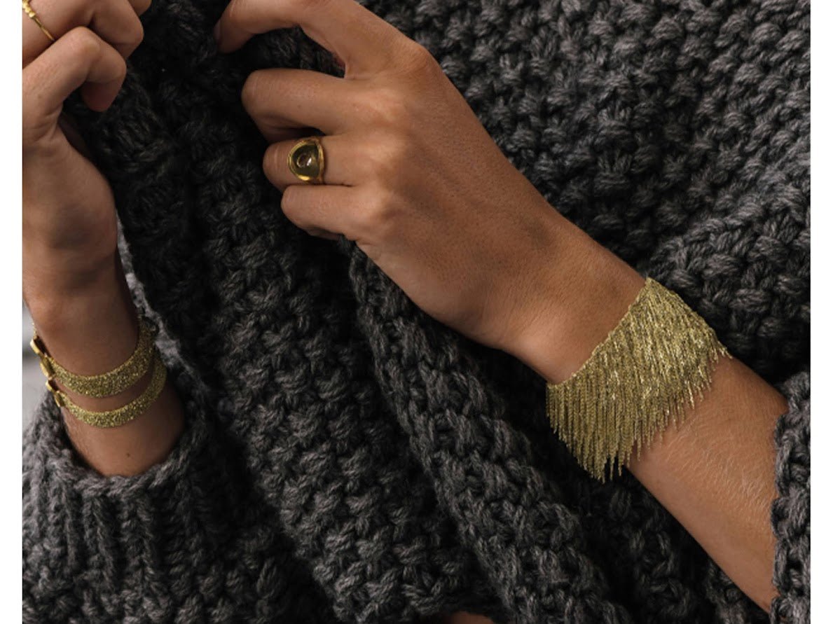 Wide Gold Woven Chain Bracelet with Fringe