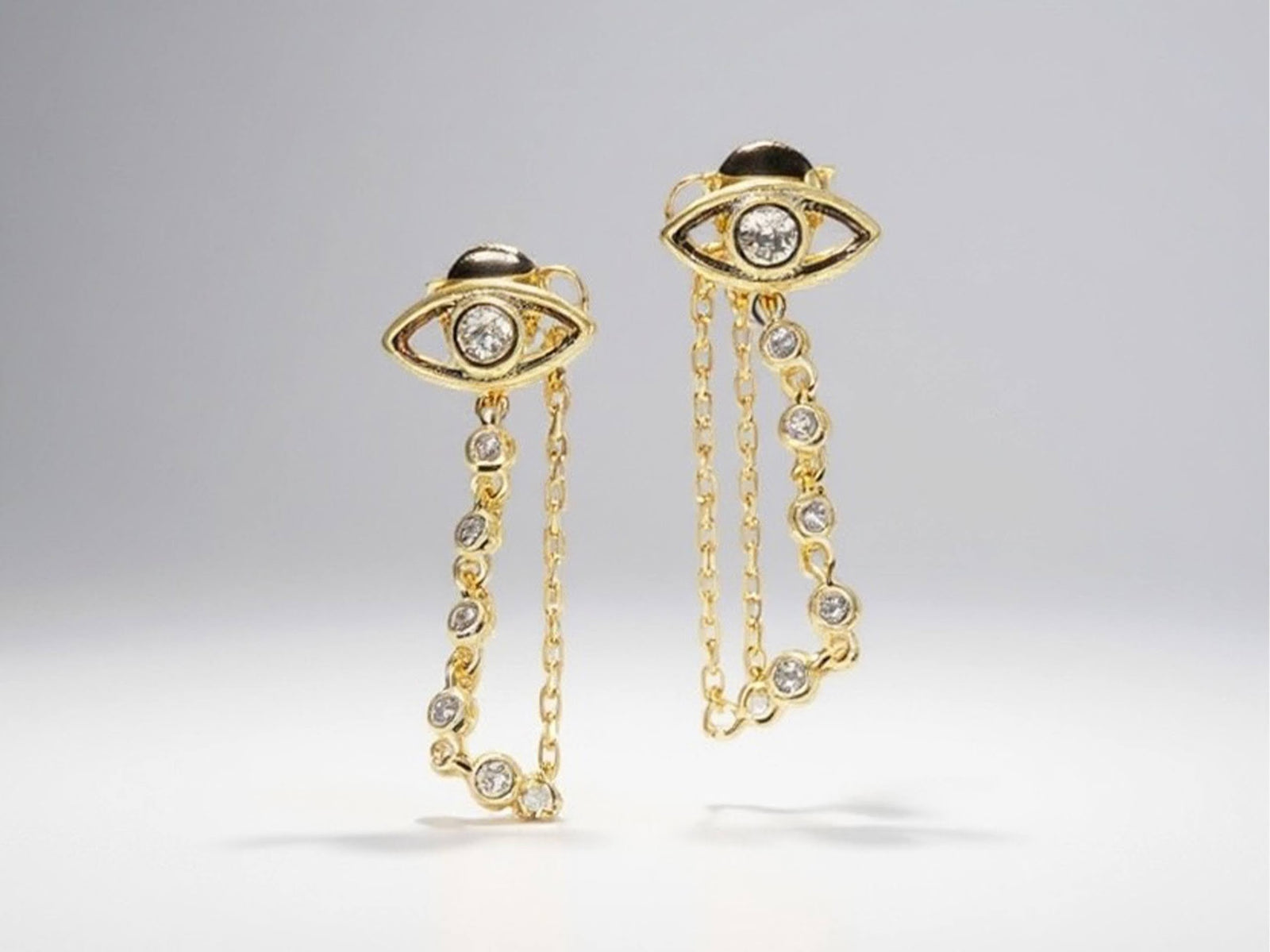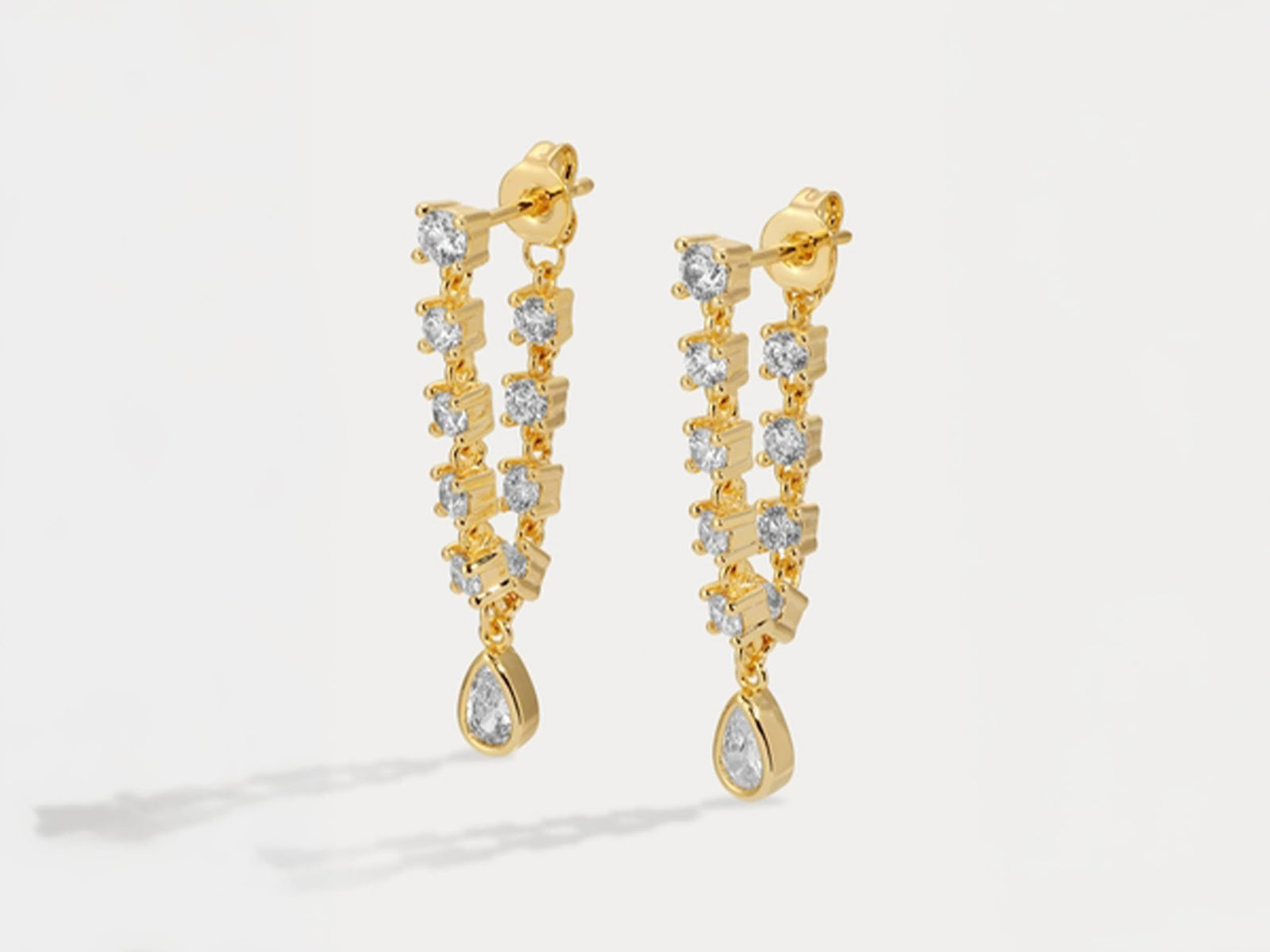 Gold Shorter Multi Chain Drop Earrings with CZs