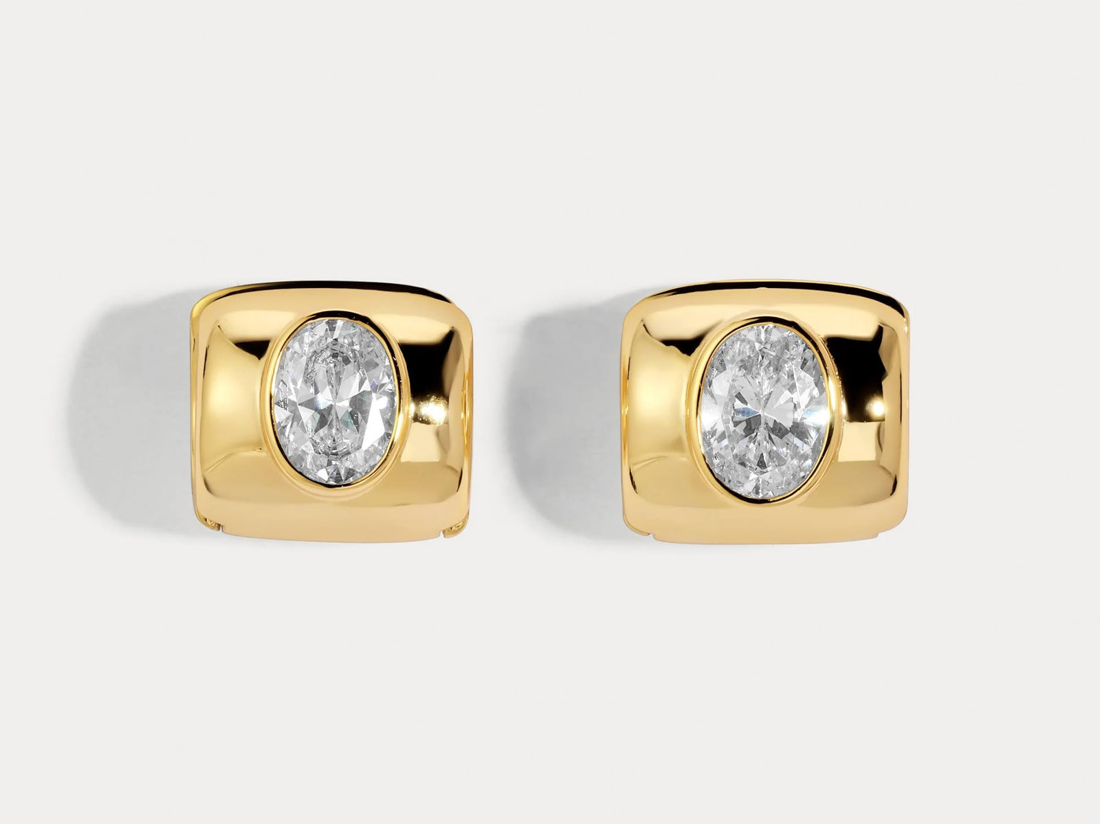Gold Mini Baguette CZ Huggie Hoop Earrings