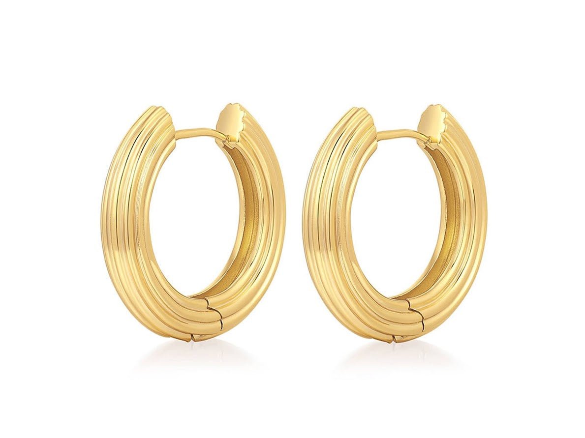 Gold Ridged Hinge Hoop
