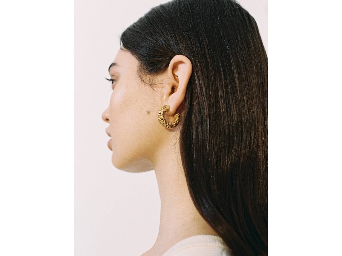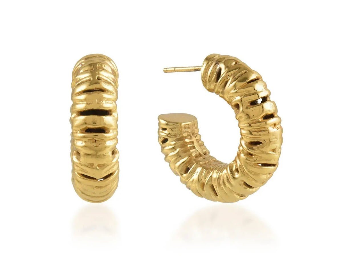 Gold Abstract Ridge Hoops